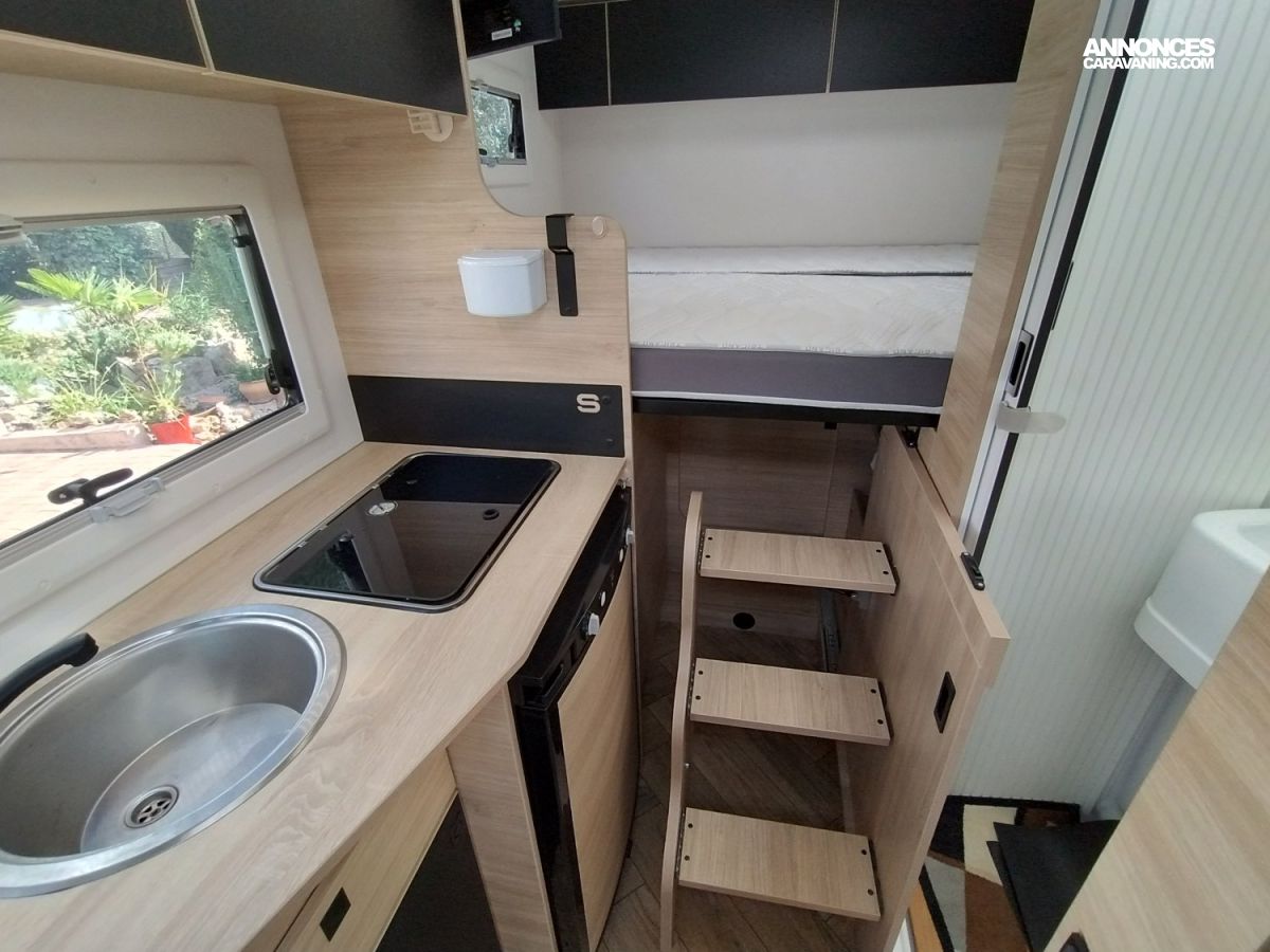 Etroit comme un van et confortable comme un profilé ! Ce modèle compact de 6.24m pour seulement 2,10m de large vous accompagnera partout sans difficulté ! Une implantation idéale pour un couple grâce à son grand lit transversale avec 2 matelas indépendant développant un couchage double de 190cm x 140cm. Un 3° couchage est possible en dinette sur l’avant.