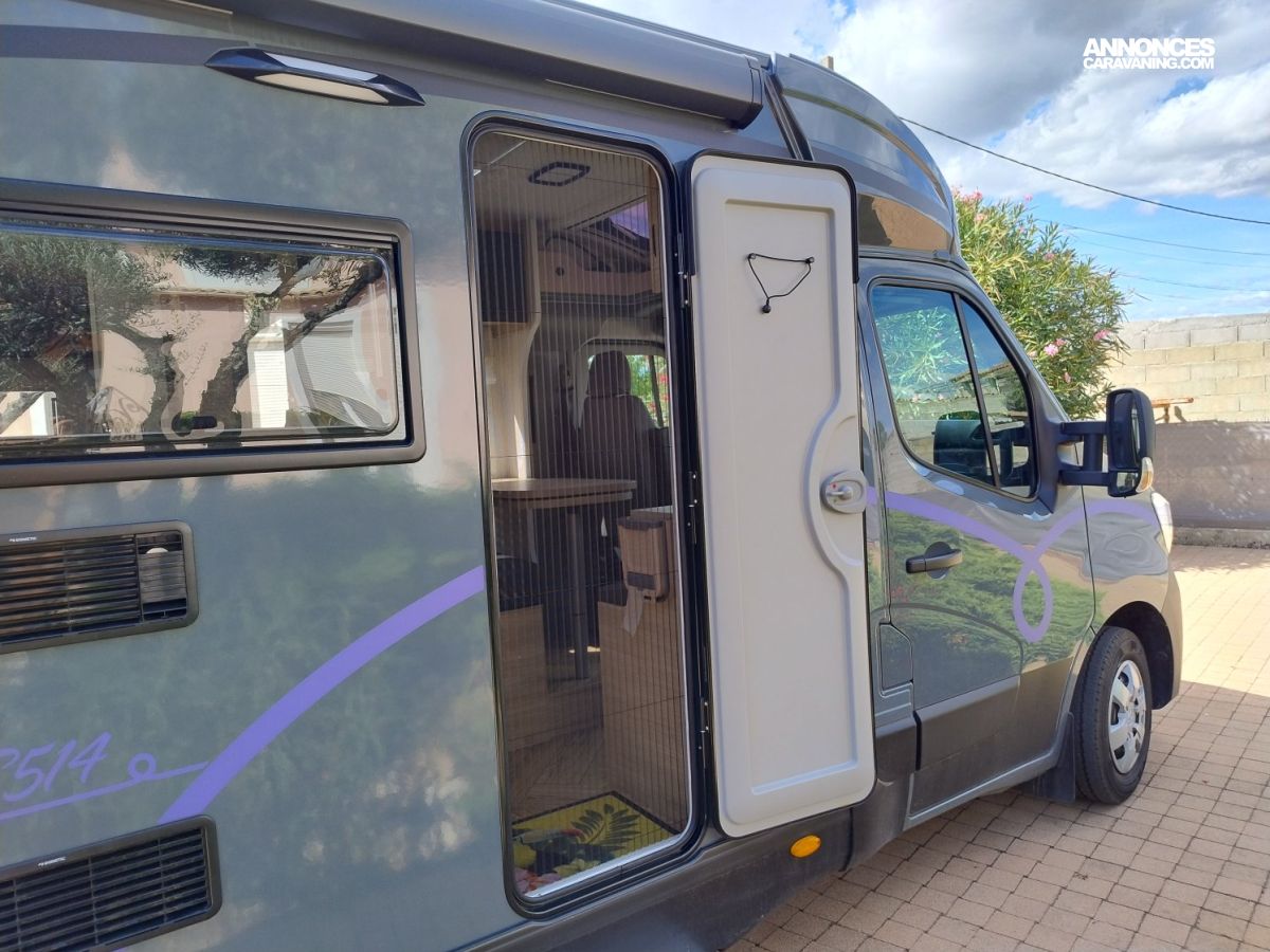 A saisir ce superbe profile slim CHAUSSON S514 Etape Line du groupe français Trigano comme neuf avec moins de 9.000 kms, sous garantie constructeur et très bien équipé.