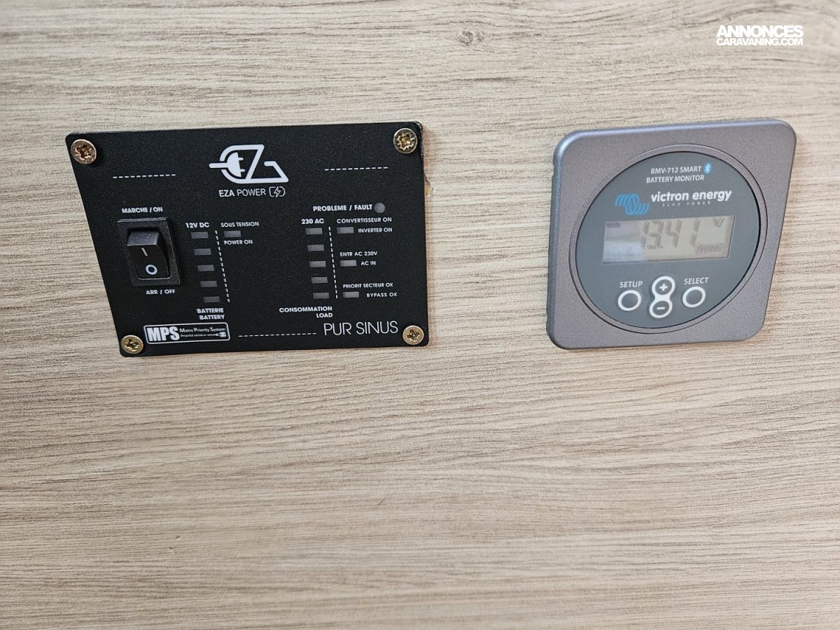 A l'extérieur, un store de 3 mètres offre un coin ombragé, tandis qu'une batterie au Lithium de 150 Ah et un convertisseur 220 V de 2000 W garantissent une énergie fiable lors de vos escapades.