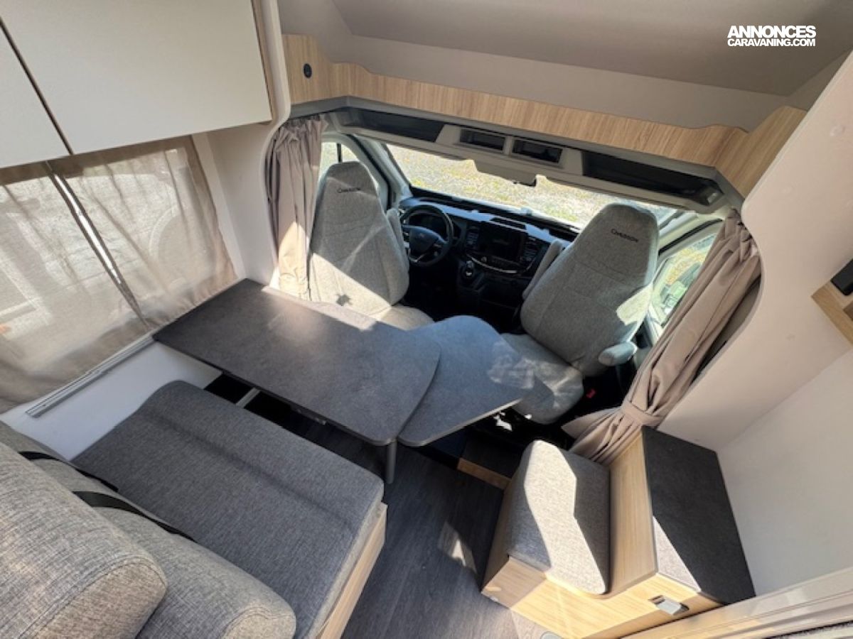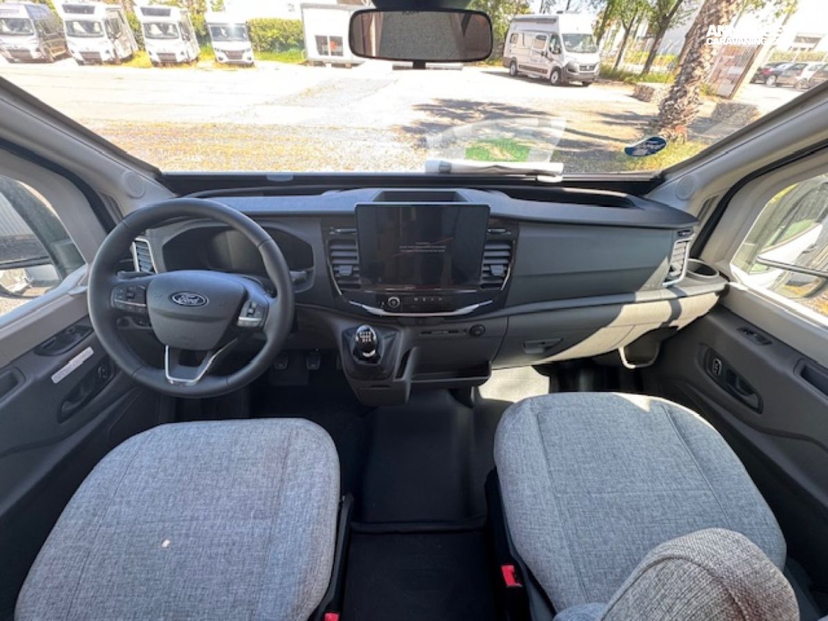 * châssis Ford en 2.0L 130CV, climatisation automatique Ford, frein à main électronique, double airbag, régulateur/limiteur de vitesse, rétroviseurs et vitres électriques, housses de siège cabine assorties à l ambiance cellule, ESP, Start & Stop, pneus en 16", feux et essuie-glaces auto, feux antibrouillards