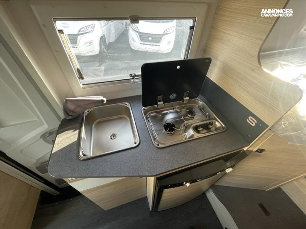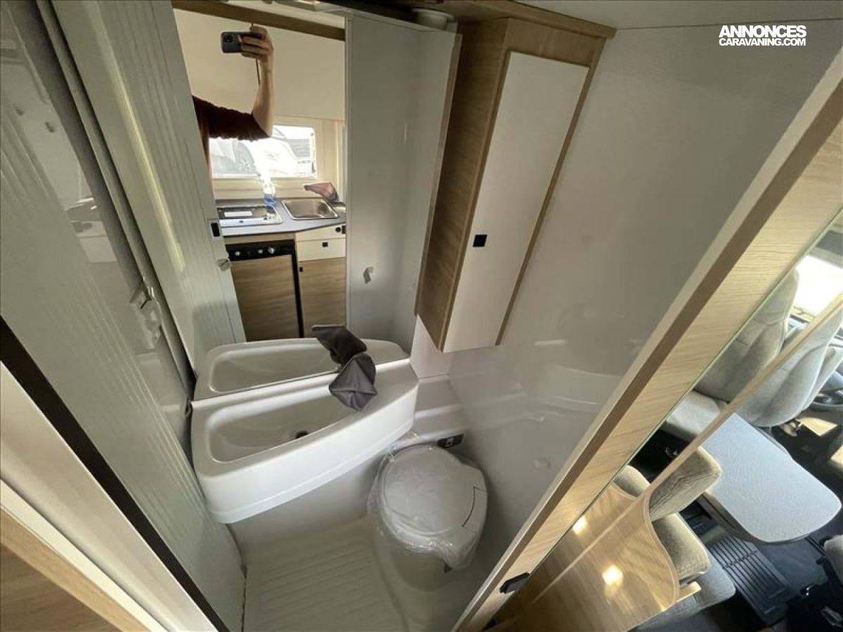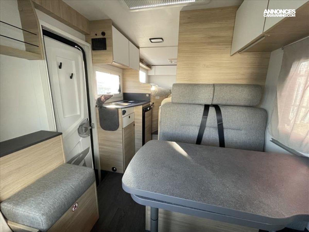 Fenêtres double-vitrage avec combiné stores moustiquaire, Rideaux d’isolation thermique des baies de cabine, Prises USB/USB-C, Jantes acier avec enjoliveurs 16'' gris, Feux et essuie-glaces automatiques, Feux antibrouillard, Pré-équipement TV, Rideaux de séparation cabine/cellule, Climatisation automatique de cabine, Précâblage caméra de recul, Housses de siège cabine assorties à l’ambiance cellule, Isolation Marche d'entrée, Lanterneau panoramique, Chauage sur carburant utilisable en roulant, Eclairage de auvent, Rétroviseurs électriques dégivrants, Régulateur / limiteur de vitesse, Frein à main électrique, Sièges de cabine pivotants réglables en hauteur avec double, START & STOP