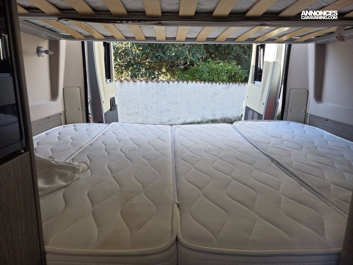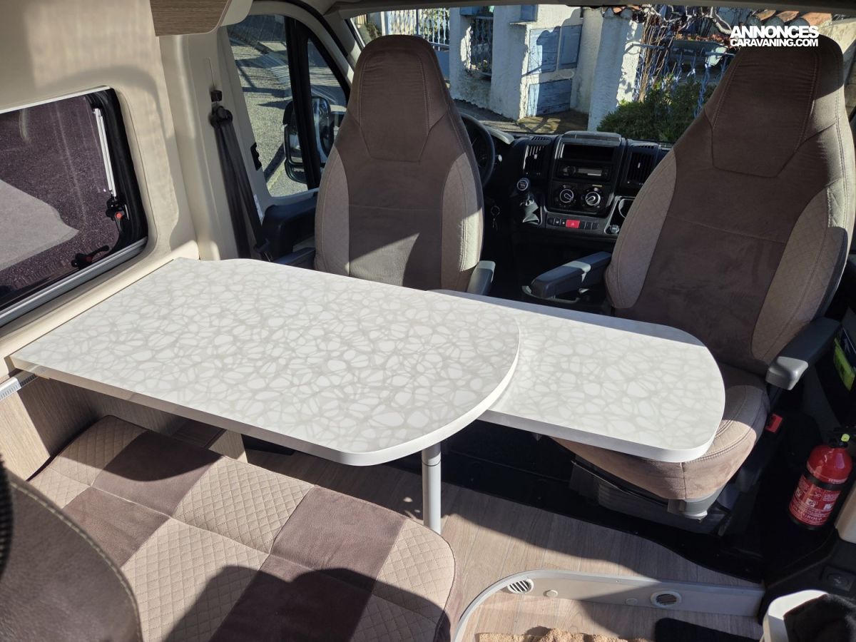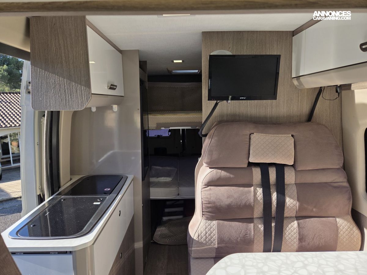 Le Chausson Twist V594 Max de 2019, en première main, est un fourgon aménagé compact et polyvalent, idéal pour les escapades comme pour les voyages au long cours. Il est équipé d’un Fiat Ducato 2,3 L de 130 ch, reconnu pour sa fiabilité et son agrément de conduite. Son aménagement intelligent comprend un chauffage carburant, assurant un confort optimal en toute saison, ainsi que des lits superposés doubles, offrant un couchage confortable pour quatre personnes. Pratique, lumineux et facile à manœuvrer, ce modèle propose un excellent équilibre entre confort, autonomie et plaisir de voyager.