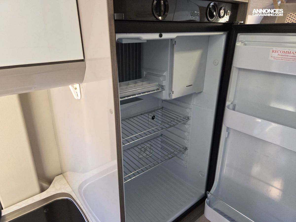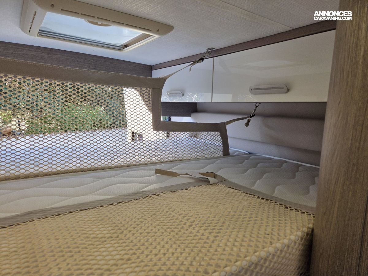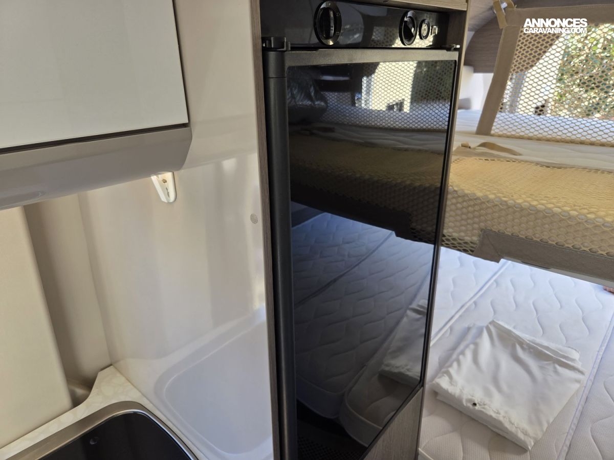 CHAUFFAGE CARBURANT, STORE EXTERIEUR 3.5M, GAZINIERE 2 FEUX, FENETRE SDB, ECLAIRAGE LED, MOQUETTE CABINE, MOUSTIQUAIRE DE PORTE CELLULE, PORTE VELO, RALLONGE DE TABLE, REFRIGERATEUR TRI MIX