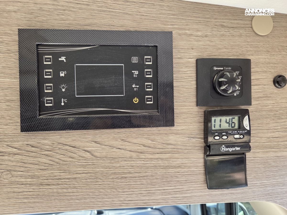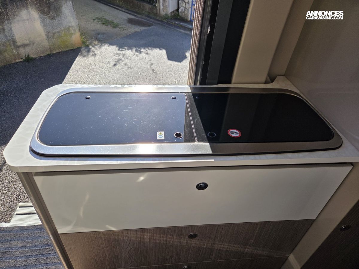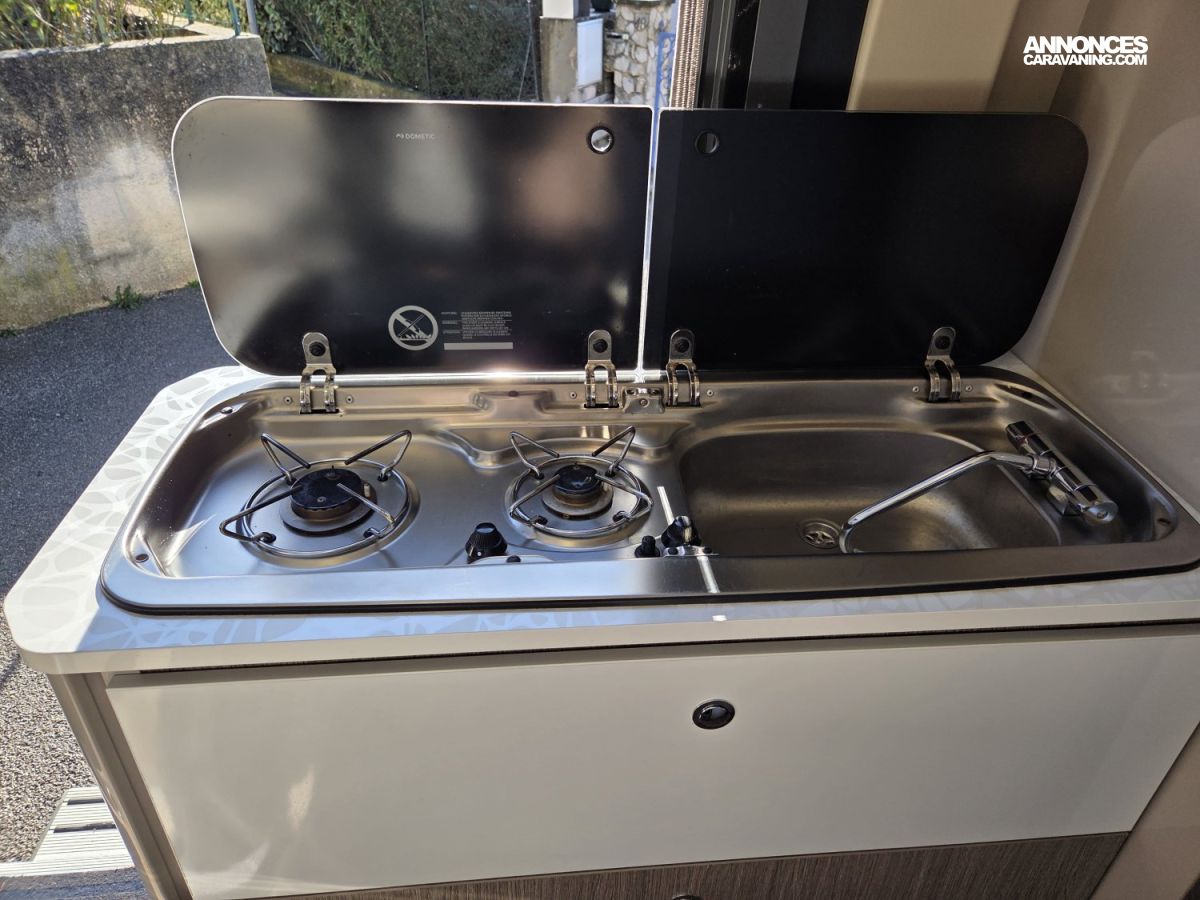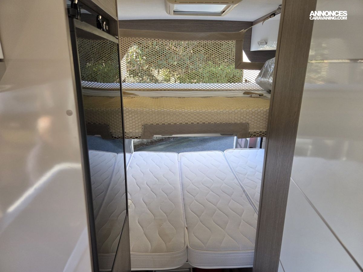 CHAUFFAGE CARBURANT, STORE EXTERIEUR 3.5M, GAZINIERE 2 FEUX, FENETRE SDB, ECLAIRAGE LED, MOQUETTE CABINE, MOUSTIQUAIRE DE PORTE CELLULE, PORTE VELO, RALLONGE DE TABLE, REFRIGERATEUR TRI MIX