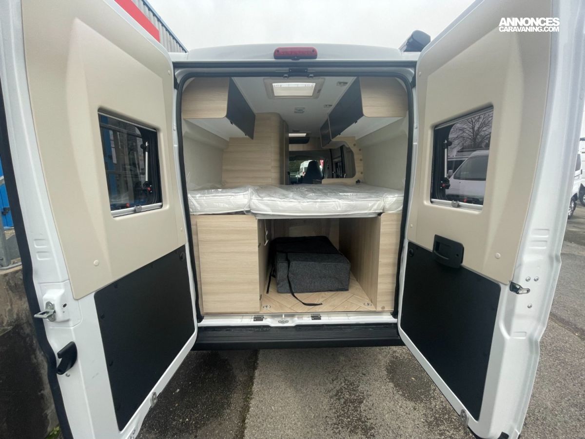 Partez à l’aventure en famille avec le fourgon CHAUSSON V594 FIRST LINE LIGHT, le compagnon idéal pour des vacances inoubliables ! Ce fourgon bien équipé a été pensé pour vous offrir confort et liberté sur toutes les routes. Grâce à son format passe-partout, il se faufile partout, des petits villages pittoresques aux grands espaces naturels, sans compromis sur l’espace intérieur. Profitez du PACK ACCESSOIRE qui inclut un store pour savourer l’ombre lors de vos pauses et un panneau solaire pour une autonomie totale, même en pleine nature. À bord, l’écran couleur avec Apple Car Play transforme chaque trajet en moment de plaisir, en facilitant la navigation et le divertissement pour toute la famille. Le CHAUSSON V594 FIRST LINE LIGHT, c’est la promesse de vacances sereines, où chaque détail a été pensé pour votre bien-être. Préparez-vous à vivre des moments uniques, où confort, praticité et technologie se conjuguent pour des souvenirs mémorables !