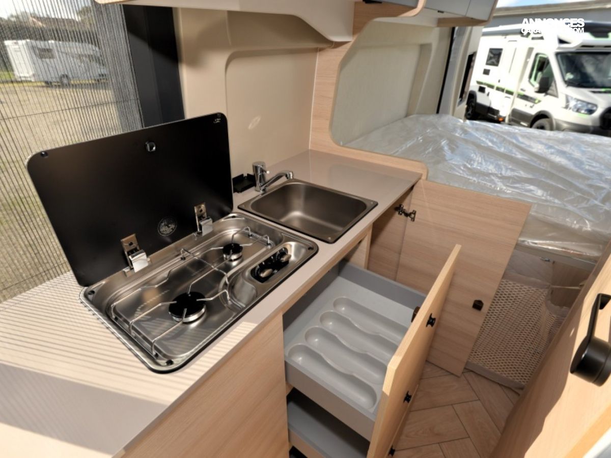 CHAUSSON vous présente son incontournable fourgon aménagé en longueur intermédiaire vous assurant une facilité de déplacement et une vie à bord confortable.