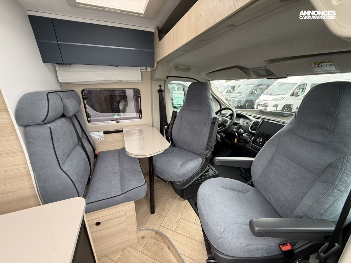 TRACTION+, COMPLEMENTS COUCHAGE DINETTE ( pack accessoires), ESP, EXTENSION DE TABLE DINETTE, CIRCUIT D EAU ET CHAUFFAGE EXTERIEURS ISOLES ( pack artic ), STORE EXTERIEUR + STORE INTERIEUR CABINE ( pack accessoires), CLIMATISATION MANUELLE CABINE, ECLAIRAGE EXTERIEUR PORTE D ENTREE ( pack accessoires), ECO PACK FIAT : start and stop / alternateur intelligent, PANNEAU SOLAIRE 200W ( pack accessoires), HILL DESCENT CONTROL, JANTES ALLIAGES NOIRES 16 ( pack look), MARCHEPIED ELECTRIQUE, MOUSTIQUAIRE DE PORTE ( pack accessoires), REGULATEUR / LIMITATEUR DE VITESSE, CHAUFFAGE COMBI DIESEL ( pack artic), PNEUS 4 SAISONS