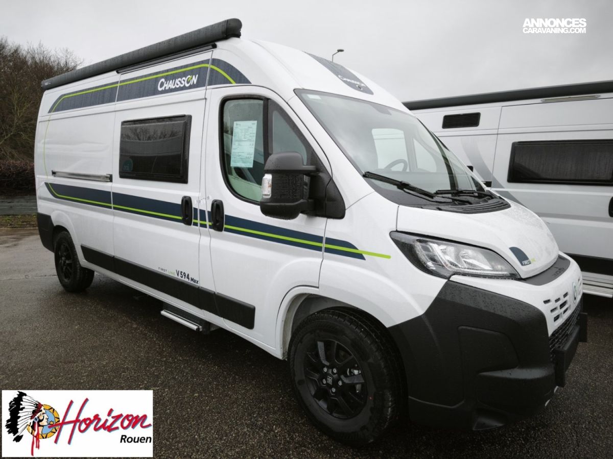 Découvrez le Chausson V594 Max First Line, un fourgon aménagé compact, élégant et ultra-équipé, conçu pour les voyageurs exigeants en quête de liberté et de confort toute l’année.