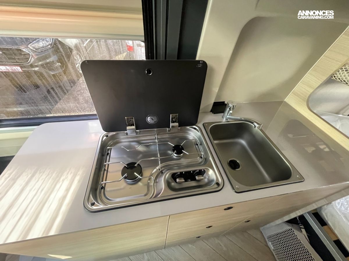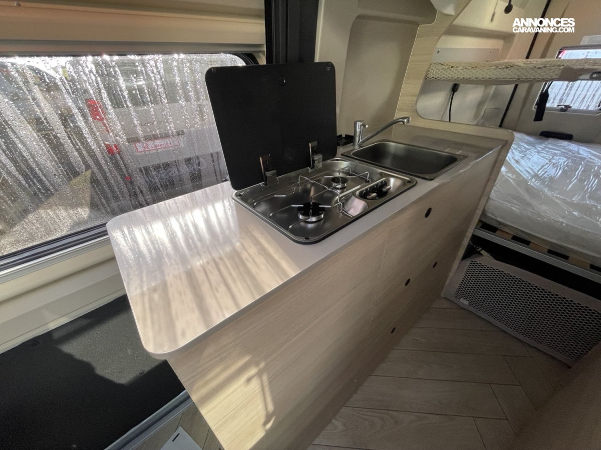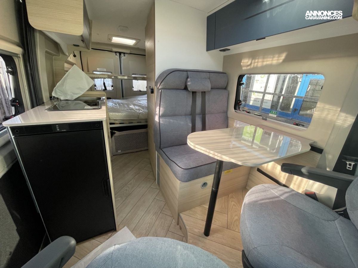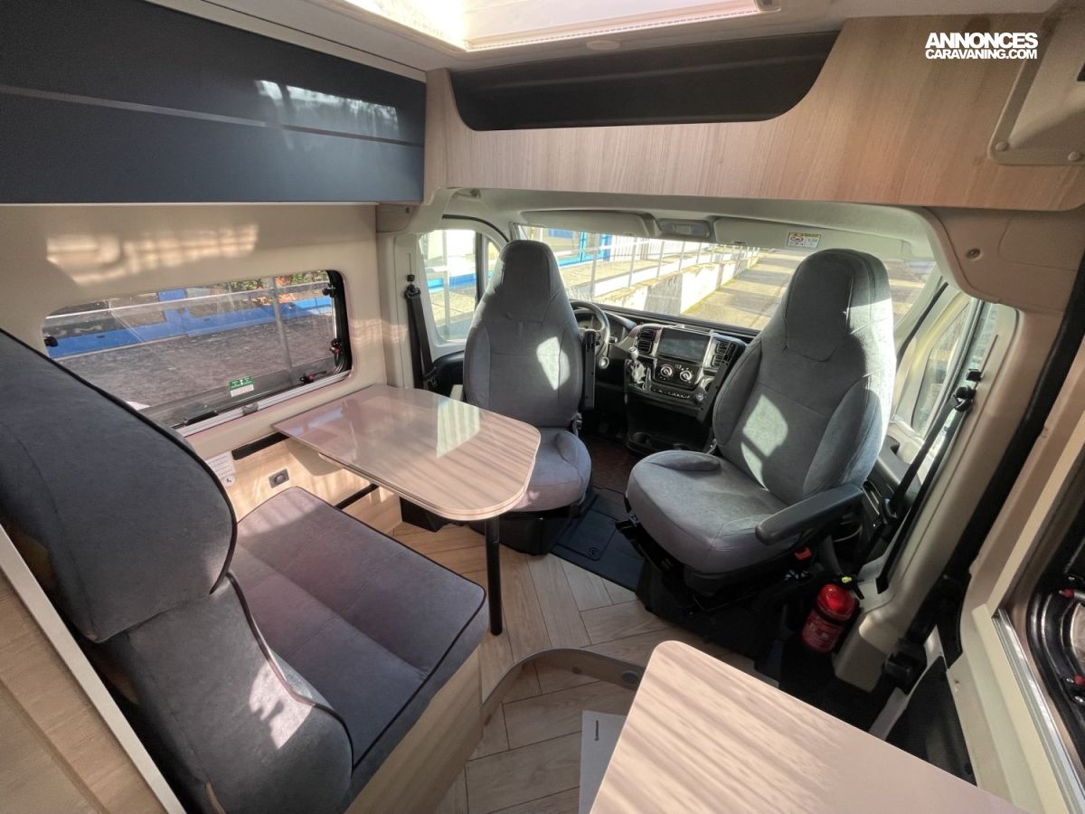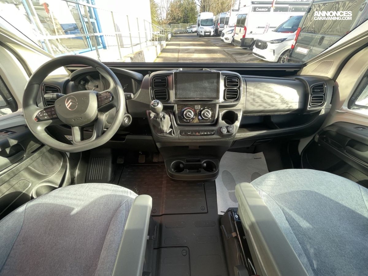 Régulateur/limiteur de vitesse, Jantes acier avec enjoliveurs 15'' gris, Pré-équipement TV, Chauffage au gaz, Marchepied électrique, Extension table dinette, Sièges de cabine pivotants réglables en hauteur + accoudoirs, Climatisation manuelle de cabine, Rétroviseurs électriques dégivrants, Fenêtres double-vitrage avec combiné stores moustiquaire, Lanterneau panoramique, Traction +, Hill descent control