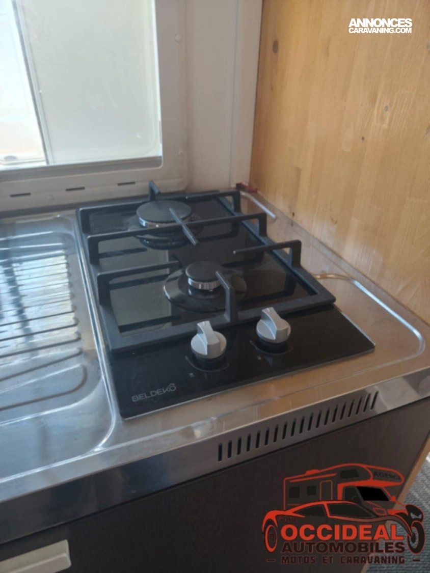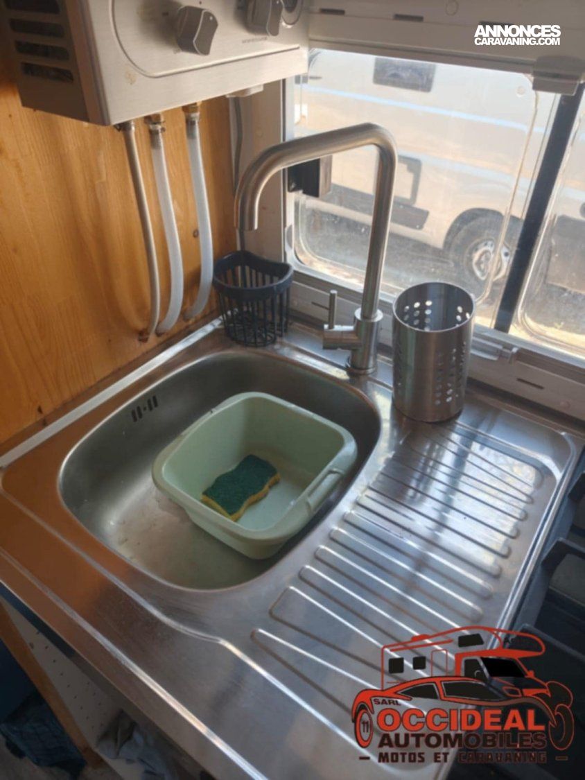 En effet ce camping-car a été transformé et conçu pour deux personnes. Vous allez pouvoir profiter pleinement de son grand espace de vie avec un salon comprenant une banquette longitudinale pouvant y accueillir jusqu’à trois personnes, d’une cuisine fonctionnelle équipée de son frigo et de sa plaque de cuisson ( 2 feux ), d’un grand bac à douche pouvant y accueillir jusqu’à deux personnes, de nombreux rangements pour y installer toutes vos affaires confortablement et ces toilettes sèches séparées.