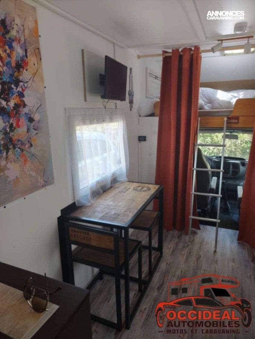 Ce camping-car Capucine saura séduire les amoureux de grands espaces intérieurs grâce à sa transformation particulière et sa configuration atypique.