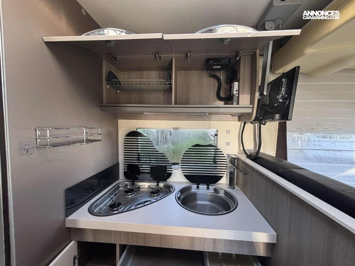 Grand frigo, Store extérieur, Autoradio, Régulateur + limiteur de vitesse, Moustiquaire porte cellule, Panneau solaire, TV, Porte vélo, Commande au volant