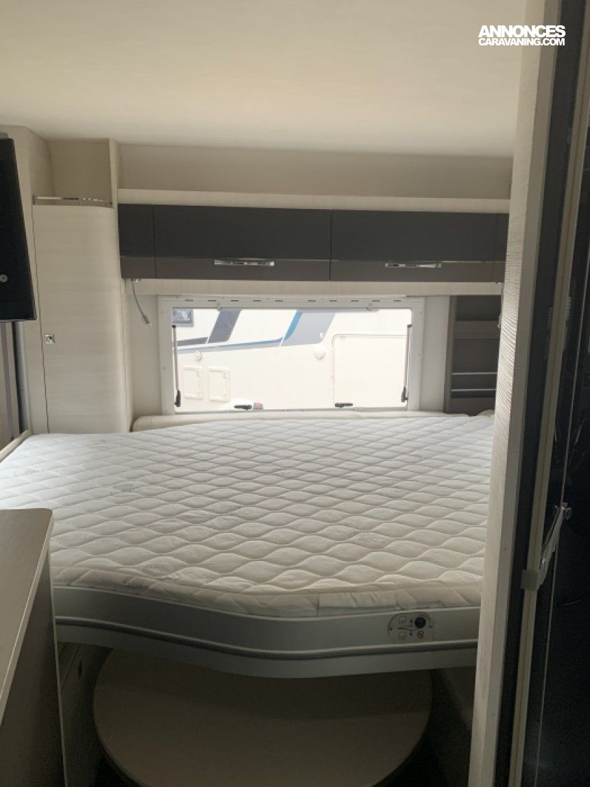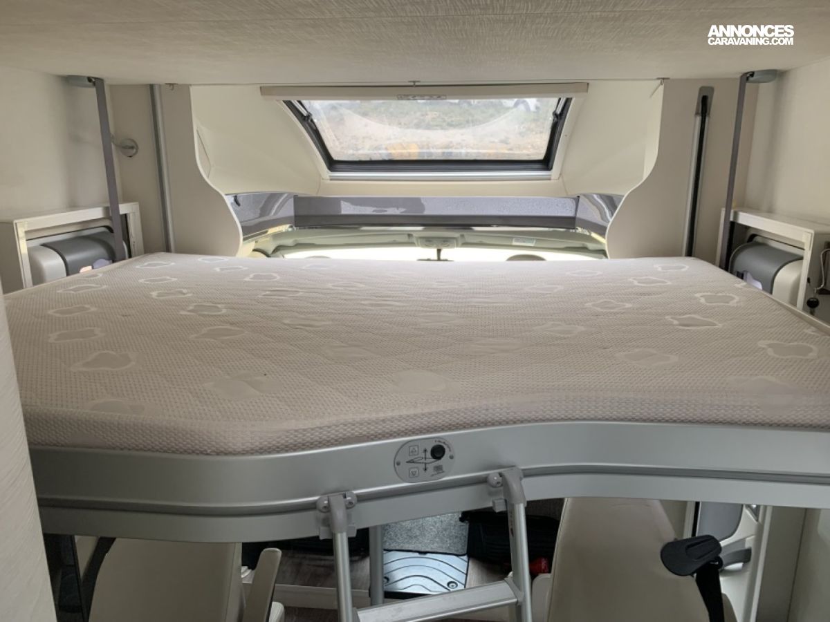 Il se distingue par deux portes cellule, deux espaces salon (un petit à l’avant et un grand salon arrière convivial) ainsi que deux lits pavillon électriques, offrant 4 couchages et 4 places carte grise.