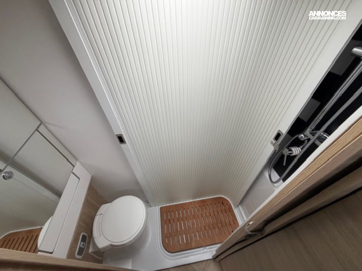 Fourgon, profile, douche séparée, très belle salle de bains, lit de pavillon