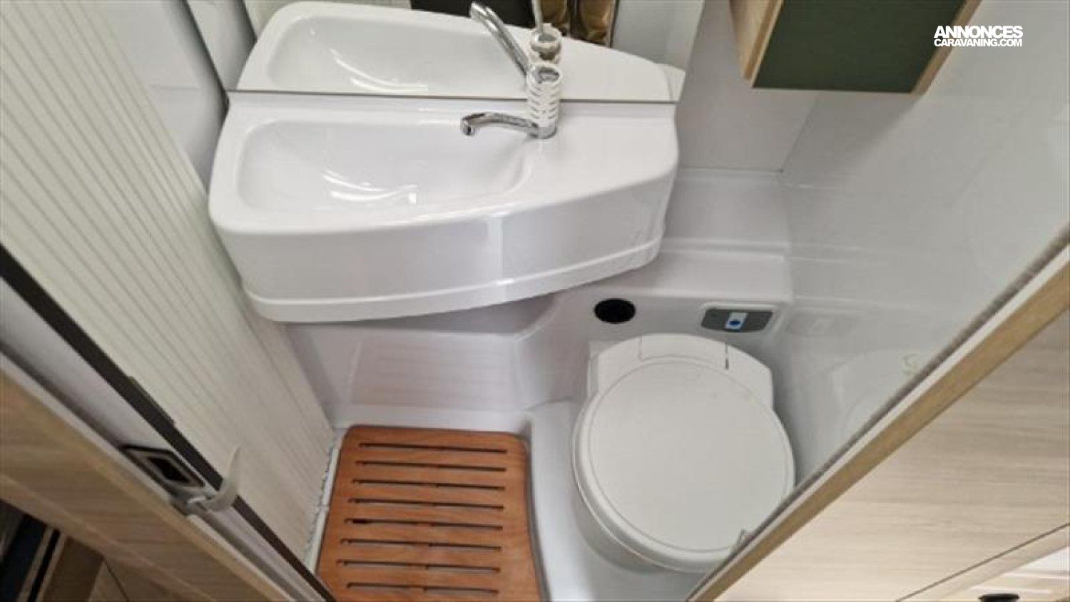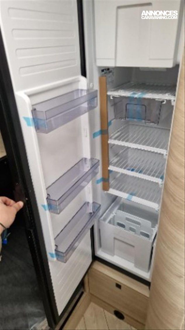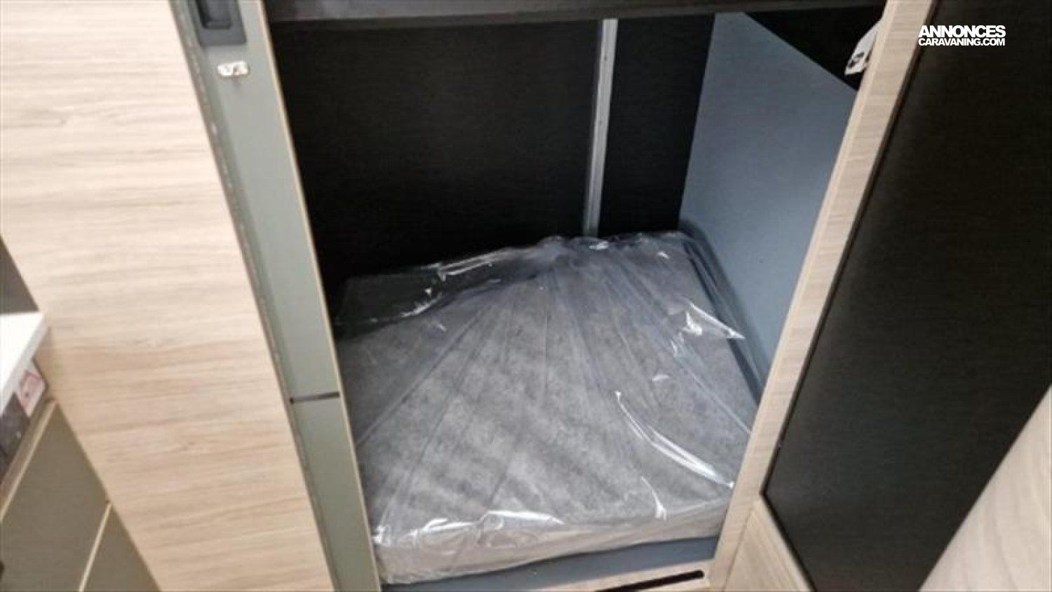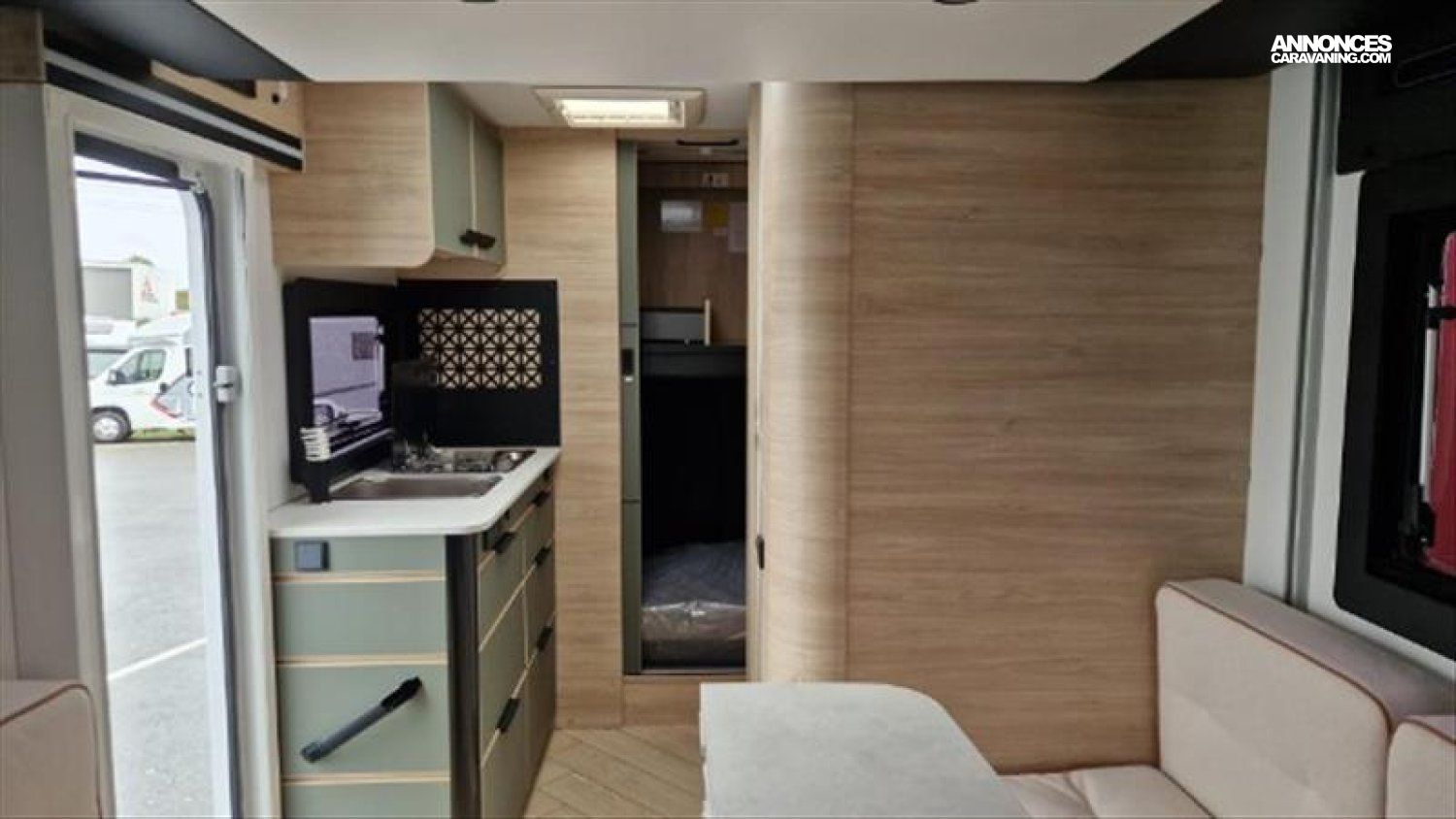 Agencement innovant avec salon face-face, lit pavillon électrique et douche indépendante.