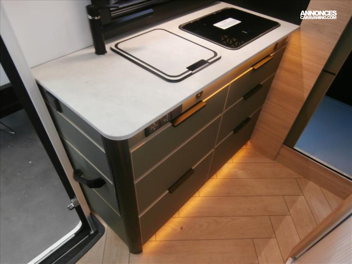 C’est le grand frère avec garage et dressing ! La partie avant est identique au X550 mais l’arrière offre un incroyable concept de modularité : Le système SDR (Smart Dressing Room) permet le réglage du dressing en hauteur pour moduler la soute-garage en fonction de vos besoins