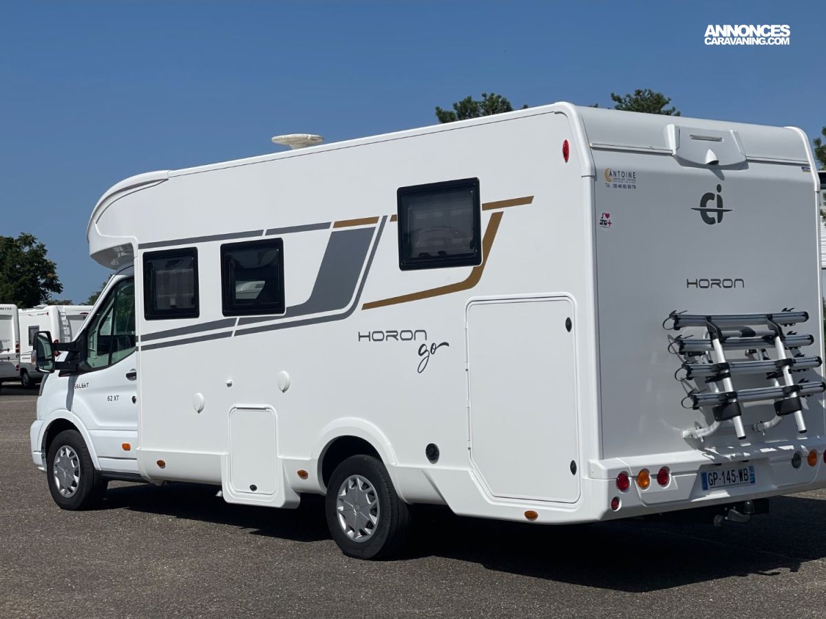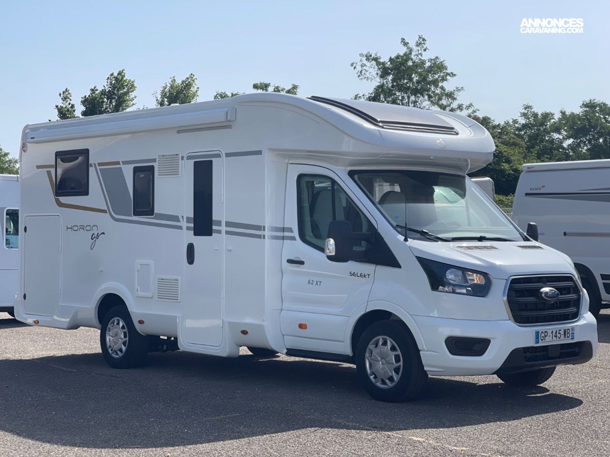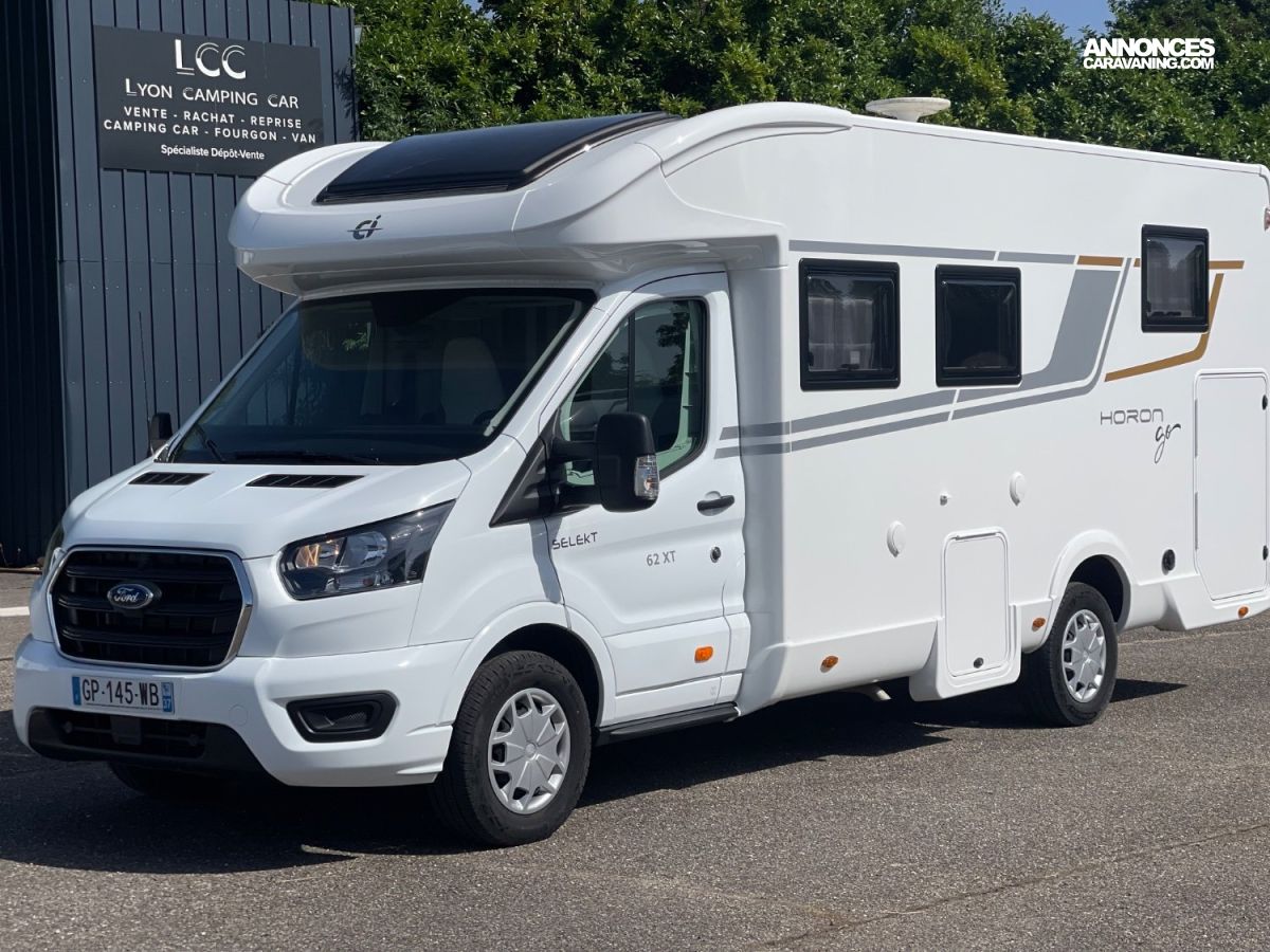 Nous vous proposons ce CI Horon 62 XT sur porteur Ford 2.0L 170ch – boîte automatique, lit central + lit pavillon, 4 places, seulement 5 262 km, 1ère main, entièrement équipé.