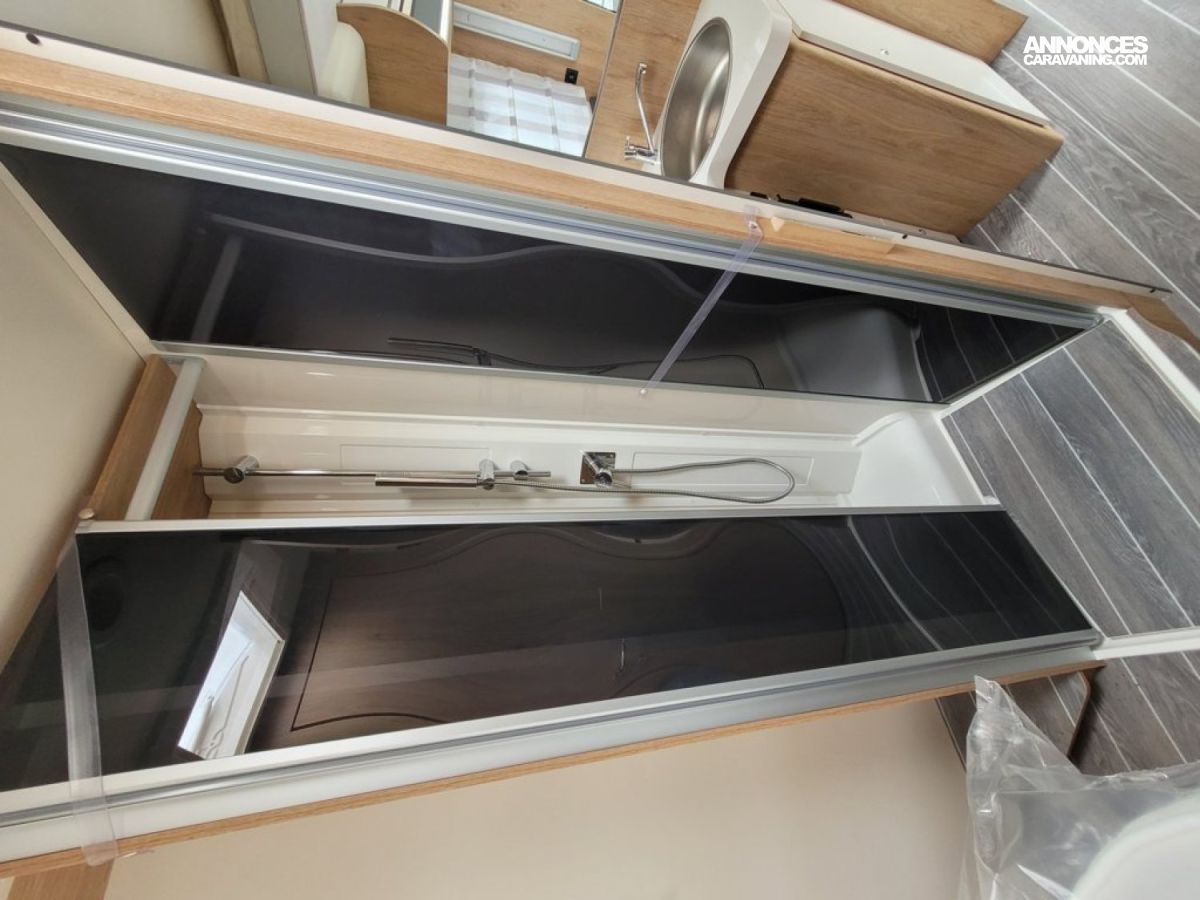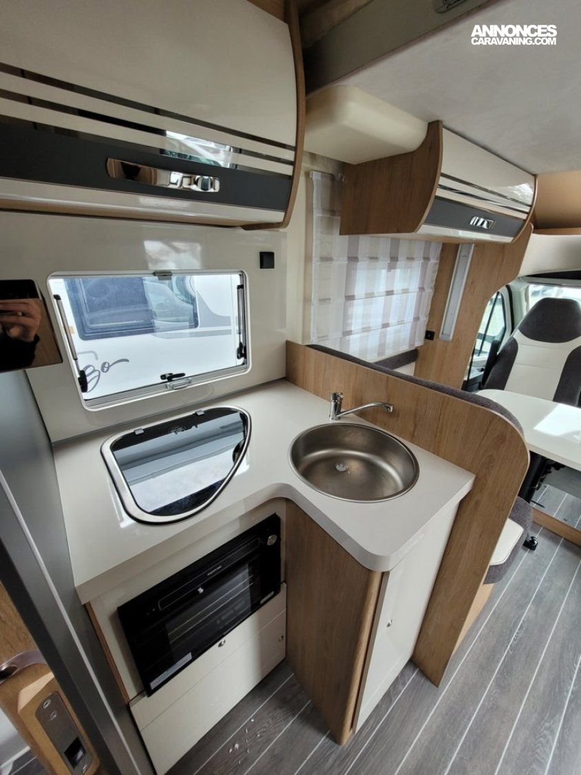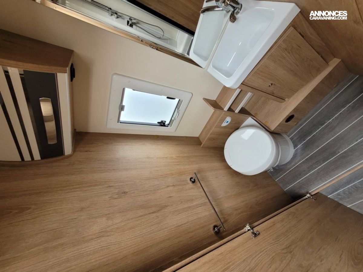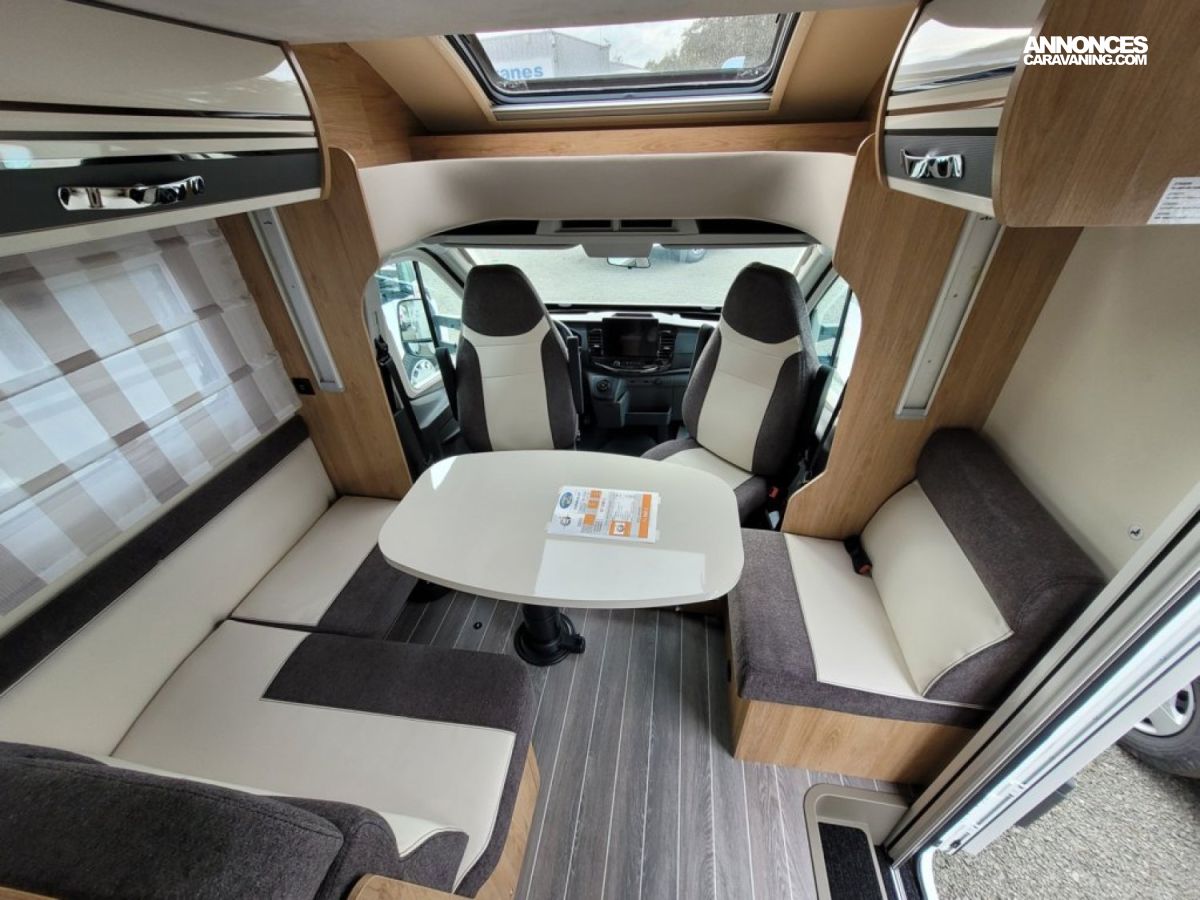Cuisine en L, Douche indépendante, Lit central, Lit dînette avant, lit pavillon, Salon avant sièges pivotants, Salon en L, Soute réglable en hauteur, WC Cassette.