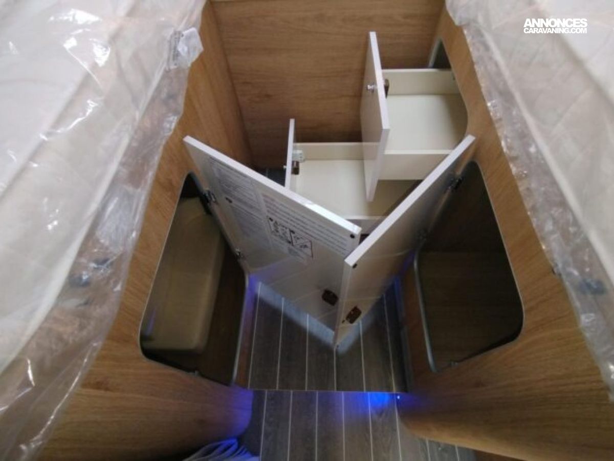 Pack ford : motorisation 165 CV, feux diurnes, boites à gants avec serrure, habillage intérieur et tableau de bord finition « tren », pare chocs et bas de caisses latérales peints couleur carrosserie, porte Xl avec 2 points fermeture, fenêtre et fermeture centralisée, panneau solaire 200W avec régulateur MPPT, panneau de commande CP plus, skyroof, couvercle évier, housses de sièges cabine, store occultants plissées cabine prise gaz externe + douchette extérieure