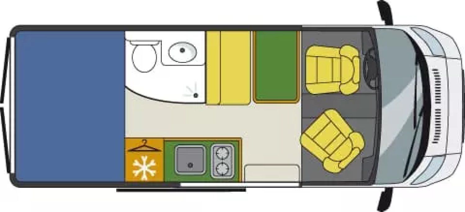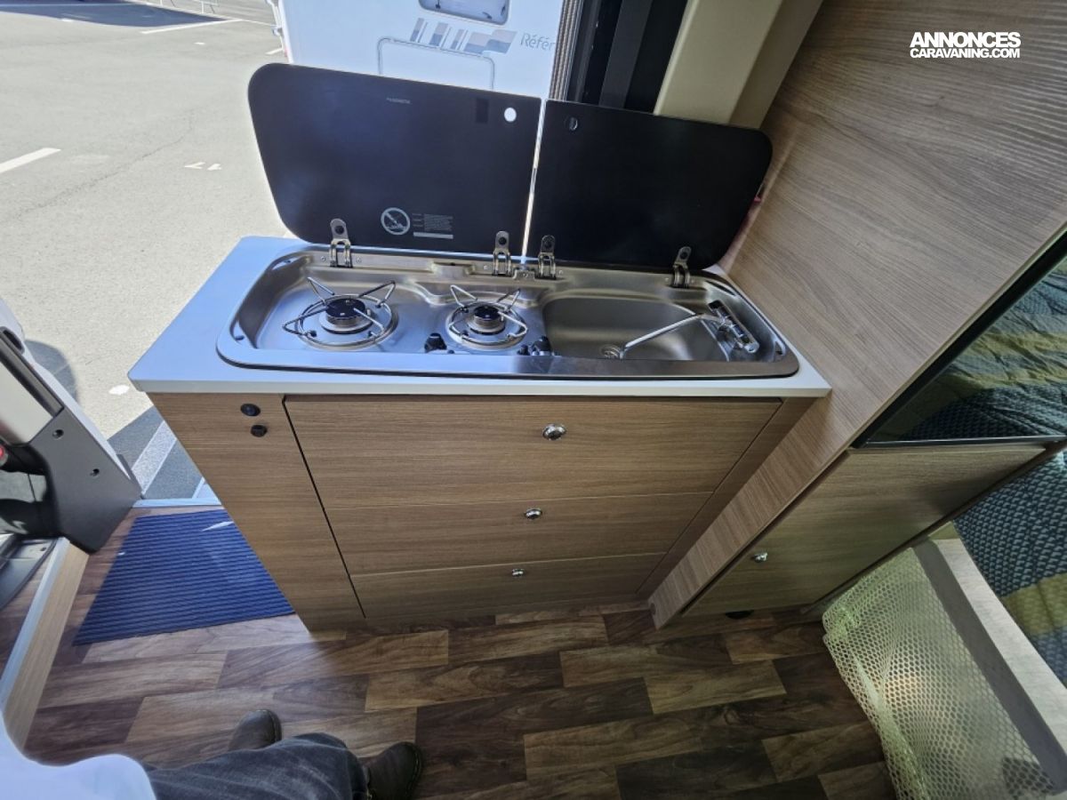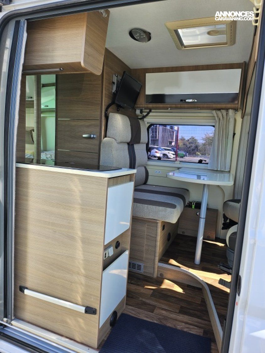 Douche : Oui - WC cassette - Eau propre : 100 l - Eaux usées : 90 l - Réfrigérateur : 80 l - Plaque de cuisson 2 feux - Chauffage : WEBASTO gasoil