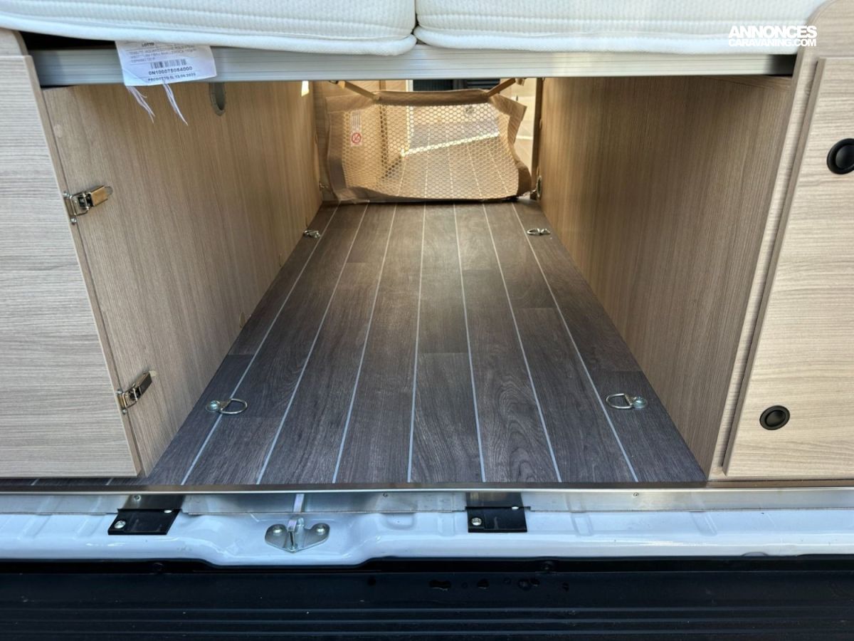 L'un des grands avantages du Kyros 5, en dehors de sa capacité de couchage, est sa flexibilité. Il est facile de retirer le lit supérieur pour transformer le van en un espace parfait pour un couple. Pour augmenter la capacité de chargement, vous pouvez également enlever la partie centrale du sommier du bas, ce qui permet de transporter un vélo non plié. Pour les escapades à trois, un sommier d'une place peut être installé sur l'emplacement supérieur.