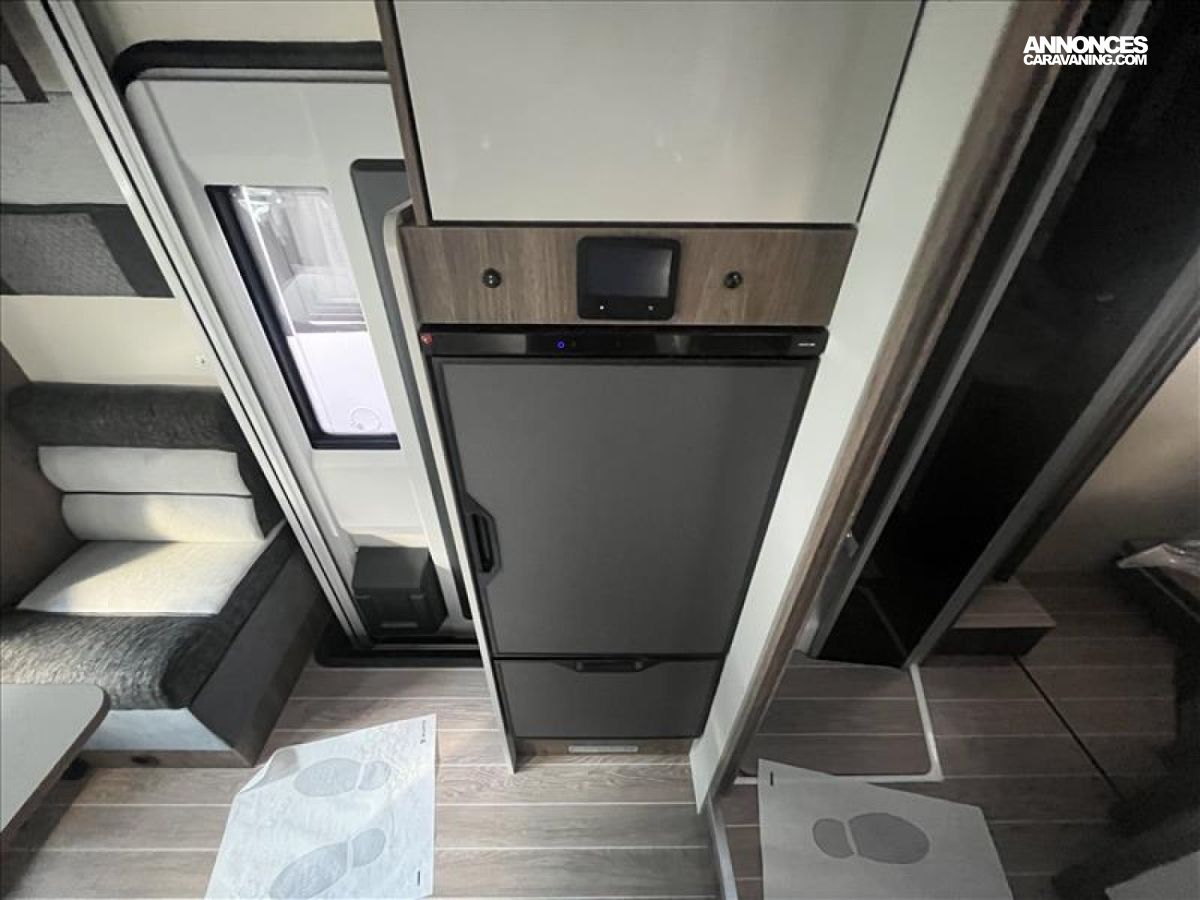Compact et raffiné, le CI Magis?66?XT 2025 (7,45?m sur Ford Transit 165?ch boîte automatique) offre un lit central arrière, un lit pavillon électrique, un salon face-à-face convivial, une cuisine ergonomique et une salle d’eau transversale optimisée. Idéal pour voyager avec élégance et confort.
