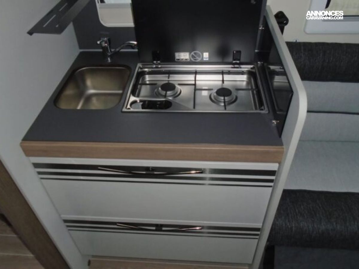 motorisation 165 CV, feux diurnes, boites à gants avec serrure, habillage intérieur et tableau de bord finition « tren », pare chocs et bas de caisse latérales peints couleur carrosserie, porte Xl avec 2 points fermeture, fenêtre et fermeture centralisée, panneau solaire 200W avec régulateur MPPT, panneau de commande CP plus, skyroof, couvercle évier, housses de sièges cabine, store occultants plissées cabine.