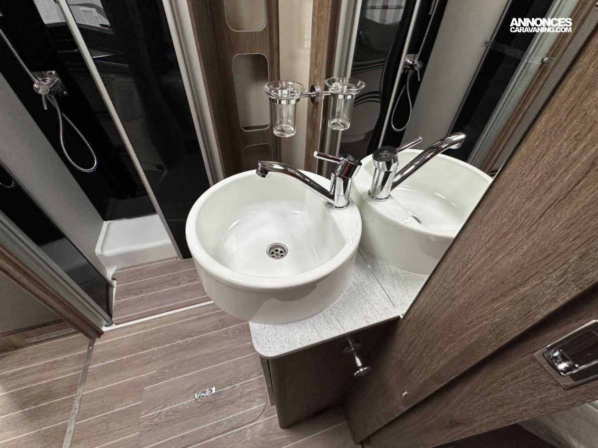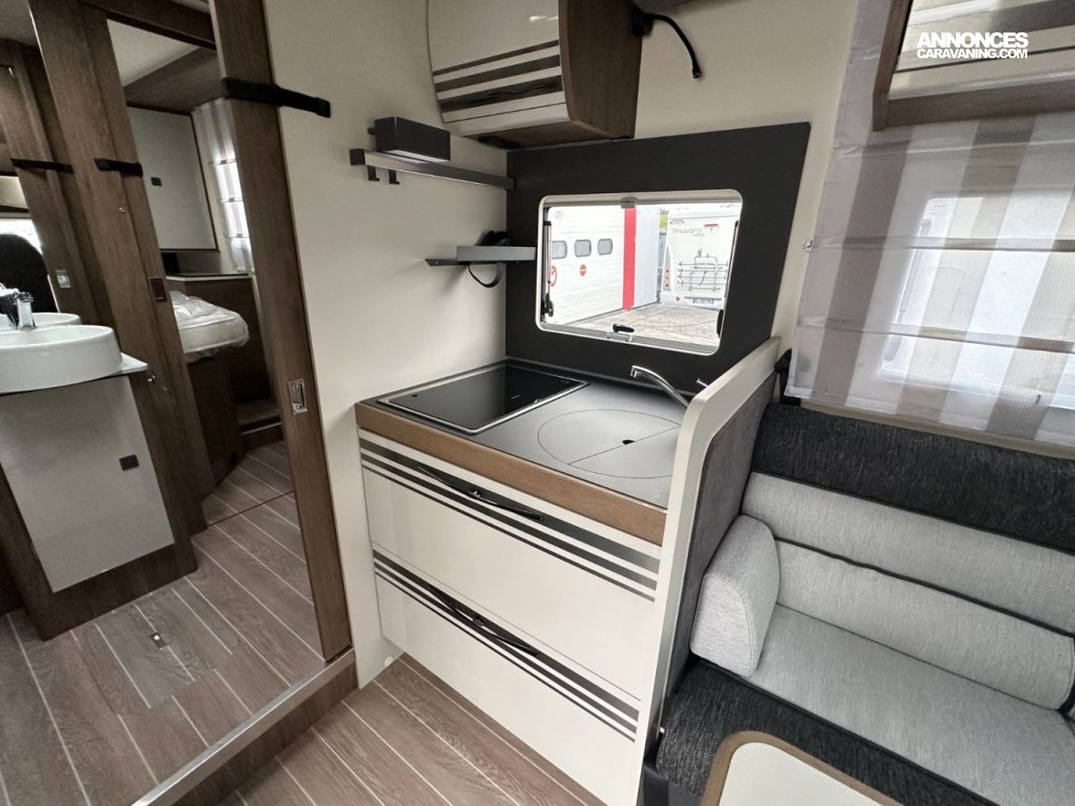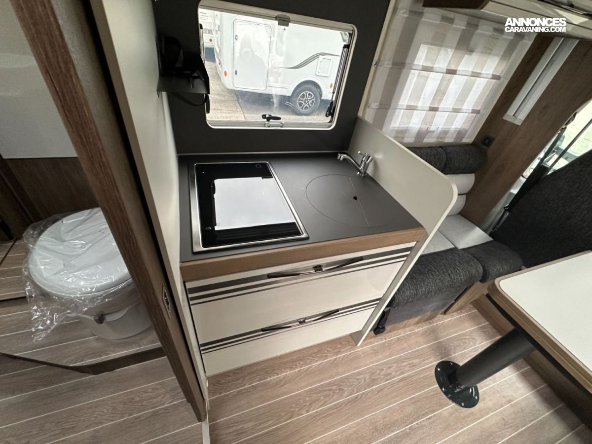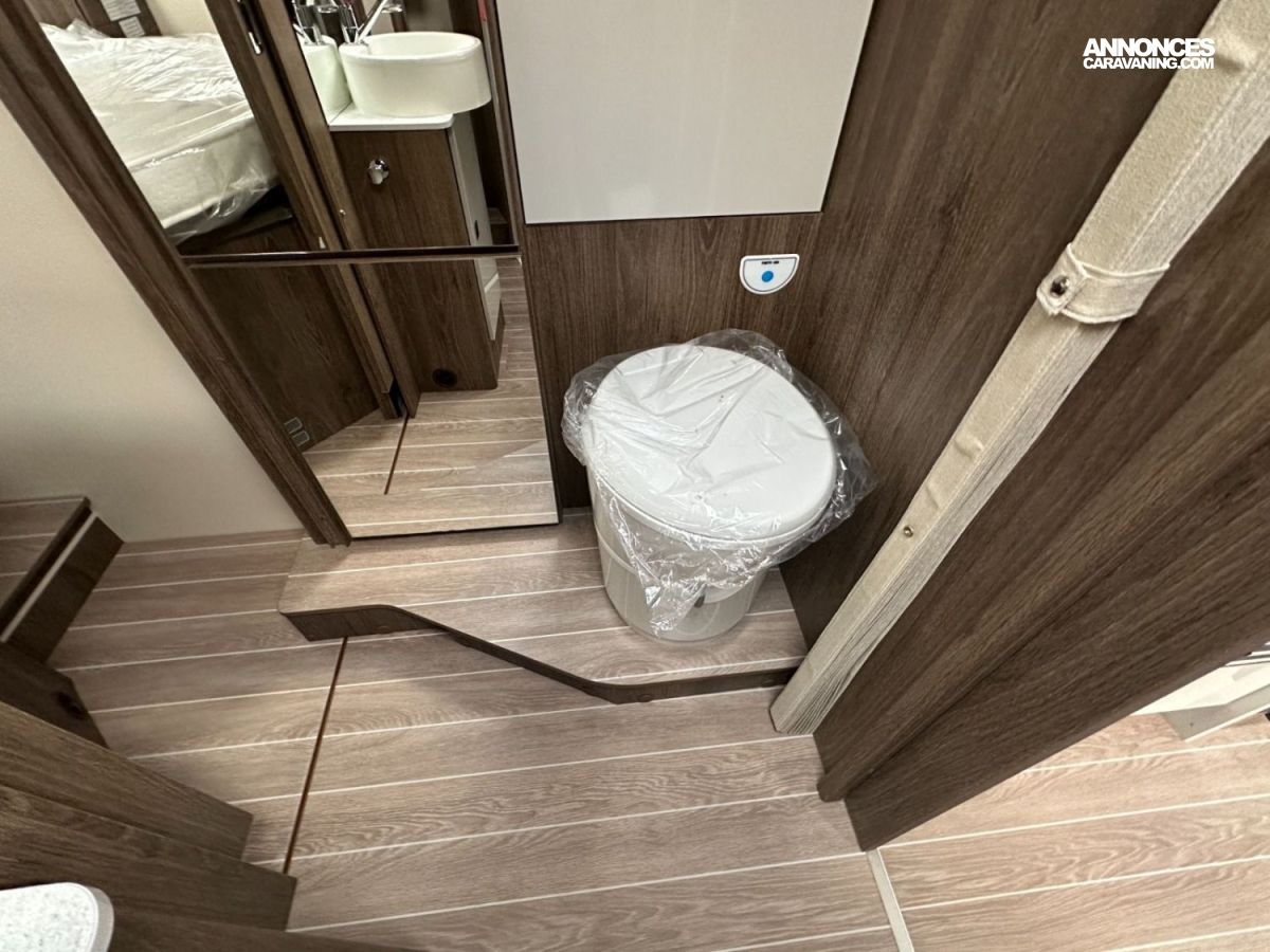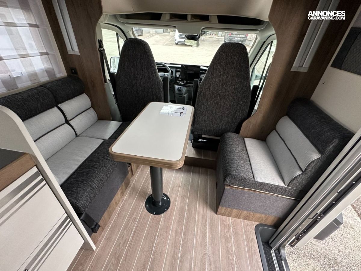 Le camping-car parfait pour ceux qui veulent profiter d’un espace généreux, bien organisé avec des zones distinctes et beaucoup de rangements. Il dispose d’un coin repas face à face, avec une table rabattable pour optimiser l’espace, ainsi que de toilettes et d’une douche séparées pour un confort optimal. Au centre, on trouve un lit double, offrant un coin nuit pratique et confortable, idéal pour des séjours en toute simplicité.