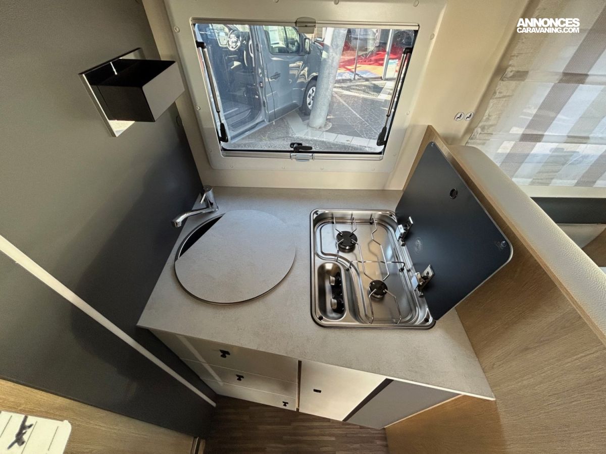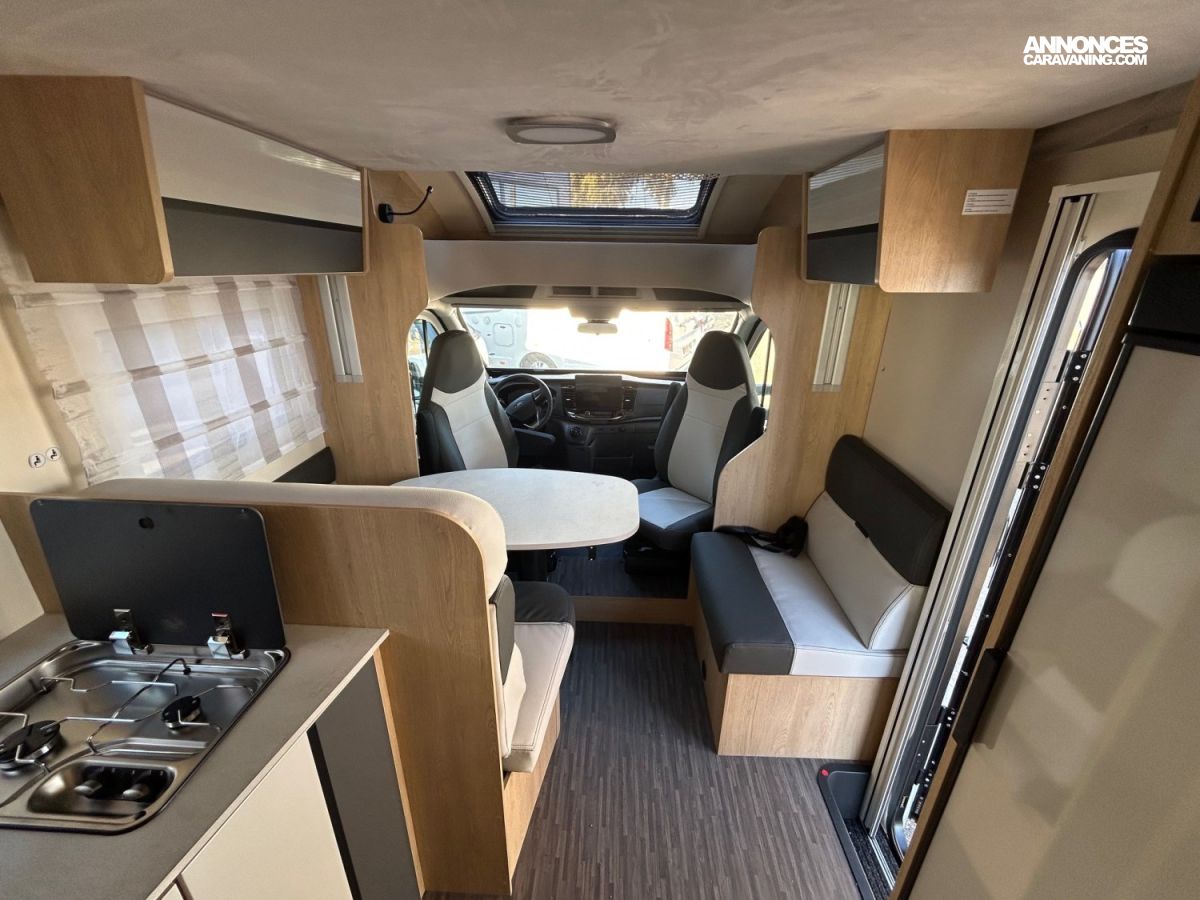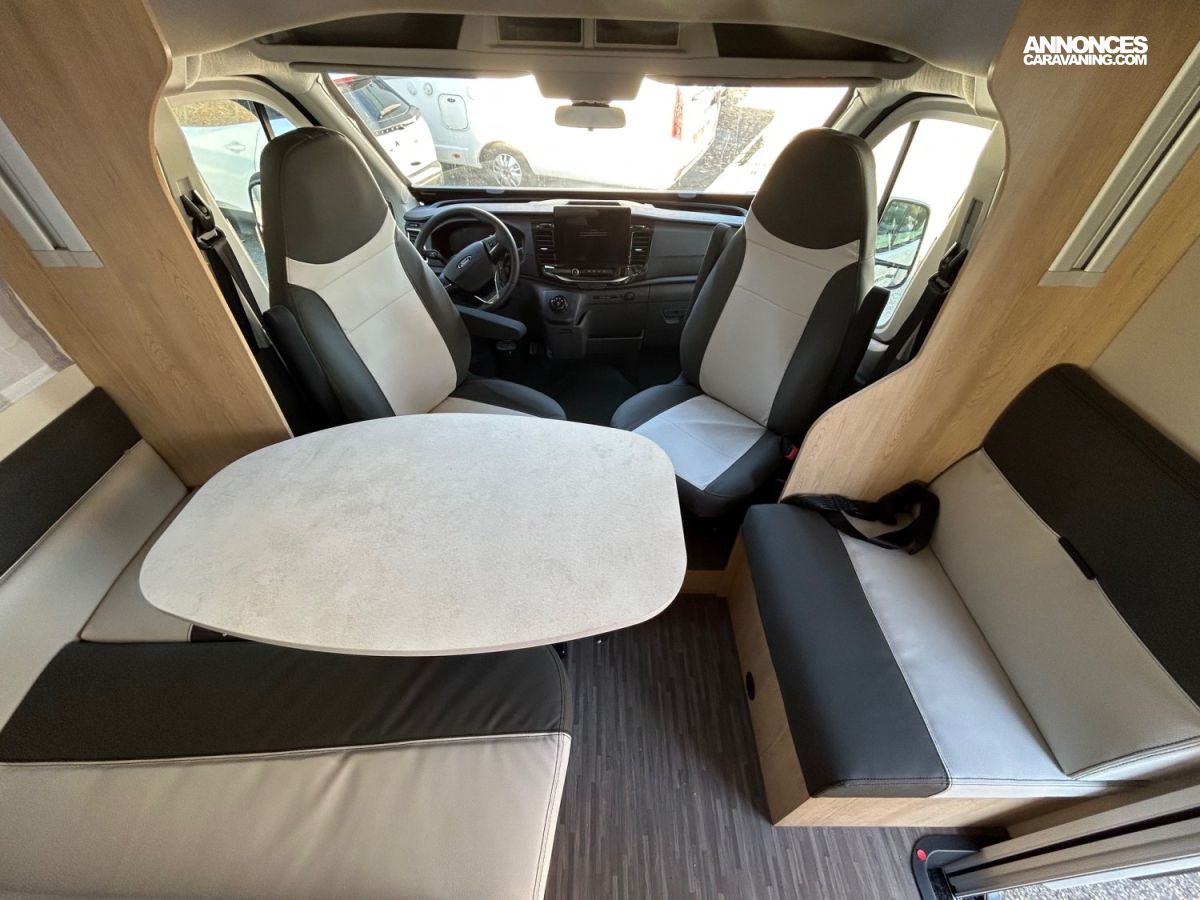 Profilé compact et élégant (6.59 m). 4 places carte grise / 4 couchages. Motorisation 2.2 L – 140 ch sur porteur Ford. Grand lit central, salon lumineux avec banquettes face à face, cuisine équipée, salle d’eau avec douche séparée, frigo 140 L et nombreux rangements. Design intérieur moderne 2026, isolation renforcée et confort de voyage exceptionnel pour partir en toute liberté !
