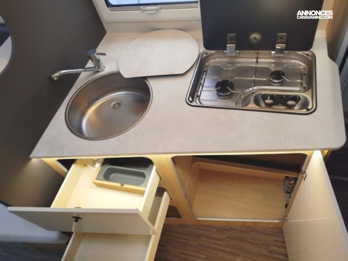 Pack manoa : motorisation 165 CV, feux diurnes, boites à gants avec serrure, habillage intérieur et tableau de bord finition « trend », pare chocs et bas-de-caisse latéraux peints couleur carrosserie, porte xl avec 2 points fermeture, fenêtre et fermeture centralisée, panneau solaire 200W avec régulateur MPPT, panneau de commande CP plus, skyroof, couvercle évier, housses de sièges cabine, store occultants plissées cabine.