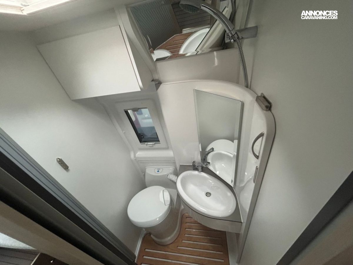 Design intelligent et pratique avec une grande soute, possibilité de séparer les deux lits et y ranger un vélo, Salle d’eau pivotante pour une fonctionnalité maximale