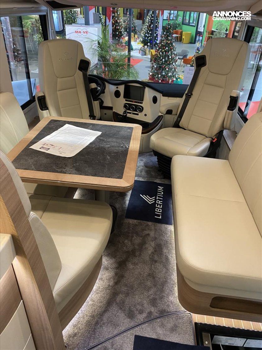 Revêtement cuir « Coco », Moquette du séjour bordurée et amovible: Gris argenté, Mobilier EBANO SILVER, Caméra odona 360 °, Pack confort et sécurité, Pack essieu arrière Concorde, Réservoir de carburant 120 l, Phares bi-LED, feux de circulation diurne avec LED inclus, Roue de secours avec jante en acier sous l'abaissement du ch, Encadrement des fenêtres du séjour et de la cabine du conduc, Salon CL (homologation 4 personnes), L'essieu avant 2.900 kg seulement châssis 70C, Pneumatiques essieu arrière avec profil traction, Système anti-blocage des roues à régulation électronique (AB, Frein de stationnement électrique, Traction Plus avec assistant de descente, Table à rallonge, Régulation anti-patinage (ASR), Boîte de transmission automatique ZF, Différentiel autobloquant pour essieu arrière, Variante de moteur 1 Iveco Daily C21, Éclairage à LED de la paroi arrière, Rétroviseurs extérieurs type autobus (long) style Centurion, Fenêtres de la cellule teintées privacy black, Store de pare brise privacy, Lit pavillon à actionnement électrique, sommier à ressorts, Stores du séjour en finition bois, Vérins hydrauliques, Plan de travail en matériau minéral avec évier parfaitement, Jantes en alliage léger 16» noir / gris mat, essieu avant, Volant multifonction en cuir Concorde amovible, Store latéral 6,0 m, électrique, Éclairage à LED des parois latérales sous le store, Lanterneau Midi-Heki au lieu du lanterneau Mini-Heki, Réfrigérateur à compression 177 l / combinaison avec four, Ventilateur de toit avec fonction aération et aspiration, Vitre en verre acrylique éclairé devant la fenêtre cuisine, Mitigeur à levier unique design finition chromée, Pack électrique « Ultra Power », Pack courant de charge pour les batteries de cellule, Double caméra de recul avec obturateur, Panneau solaire d'env. 420 W de puissance maximale, Système satellite TV avec écran plat LED 32“ dans l'armoire, Full HD LED Smart TV 24" sur l'armoire derrière le siège con, Système de navigation, Douche extérieure dans le garage (côté conducteur), Réservoir d'eau potable env. 320 l, Prise extérieure pour le gaz côté passager, Réservoir de gaz 120 l env. avec préfiltrage du gaz, Échangeur de chaleur du moteur, Climatisation cellule