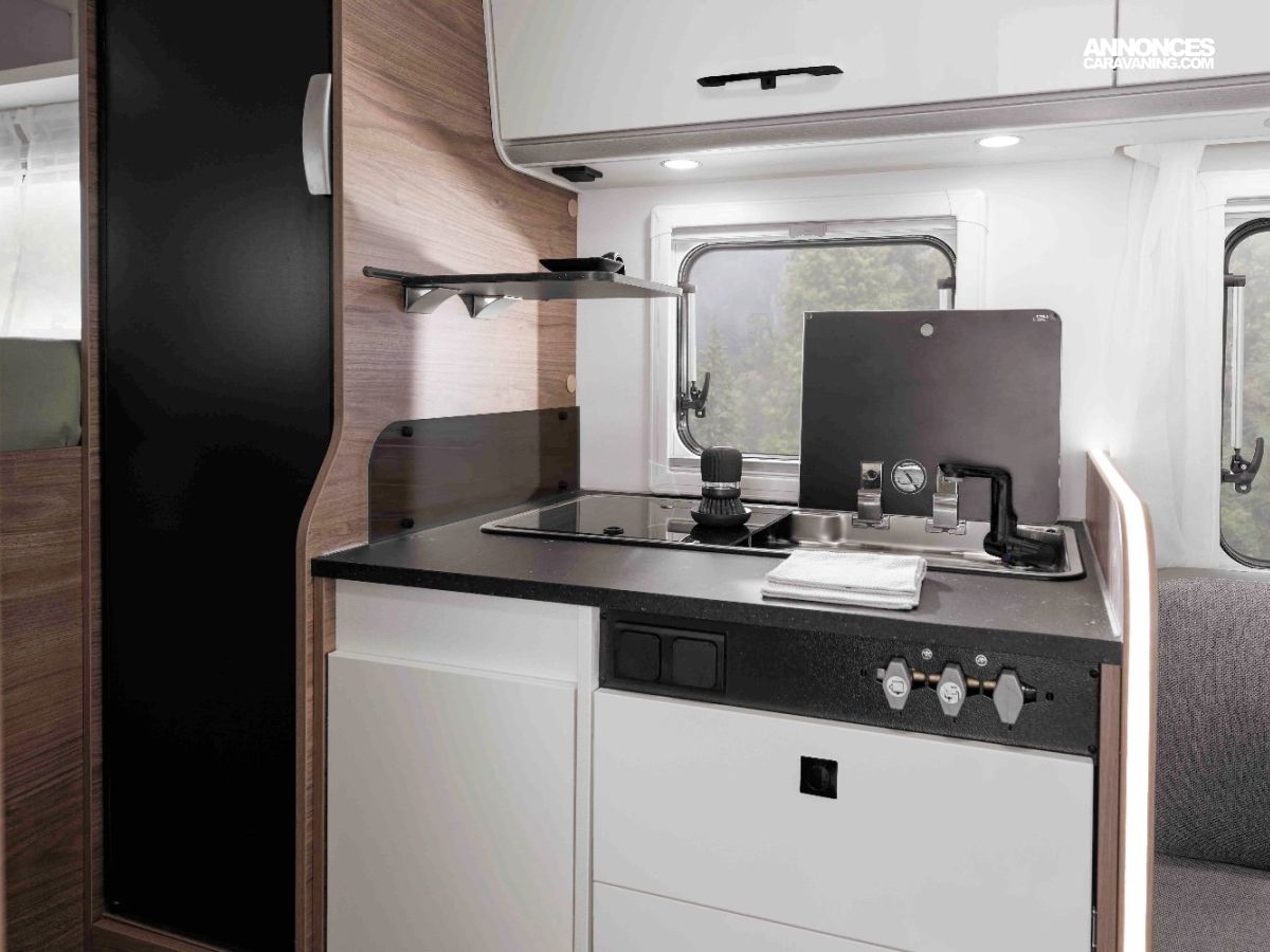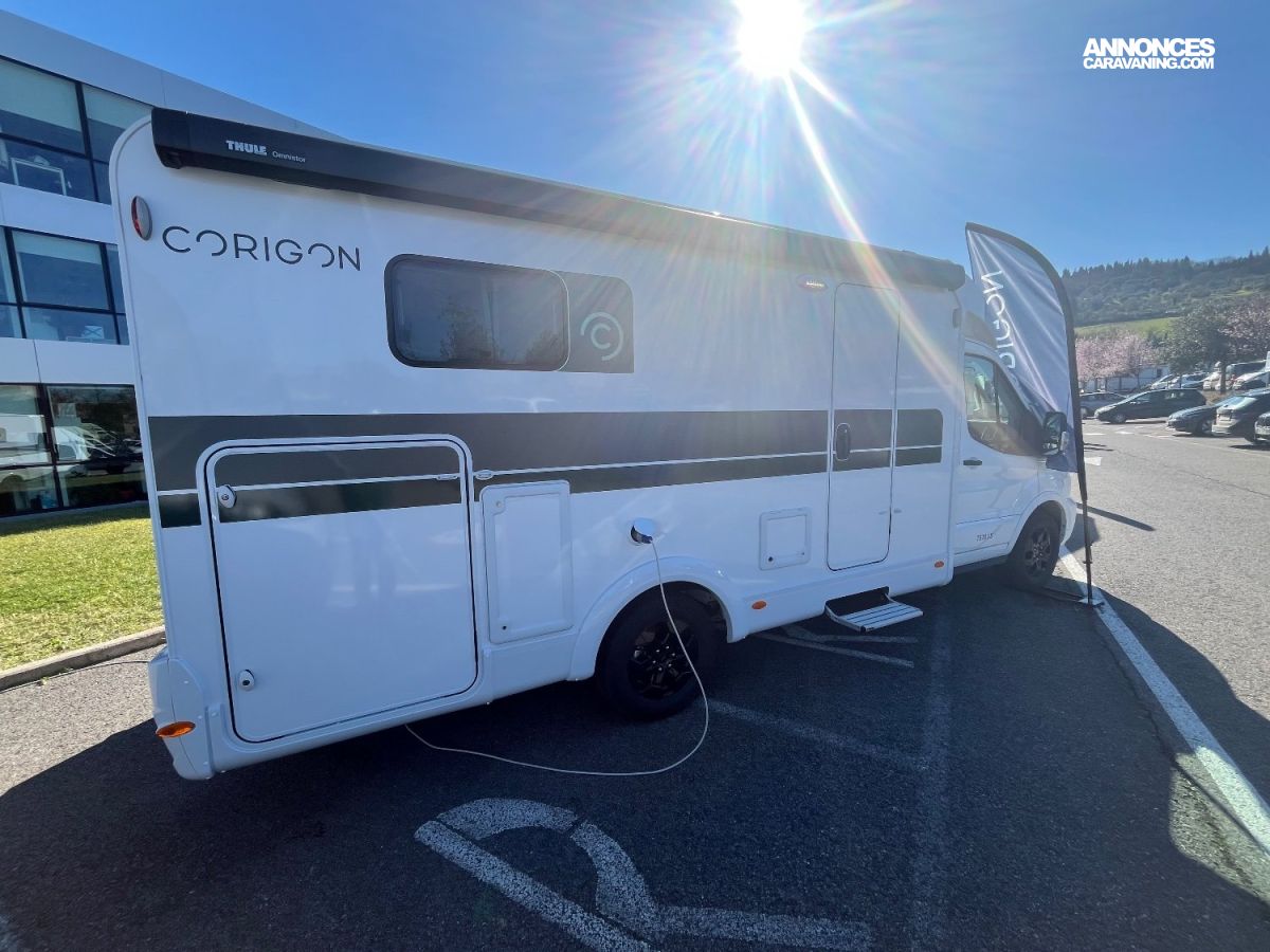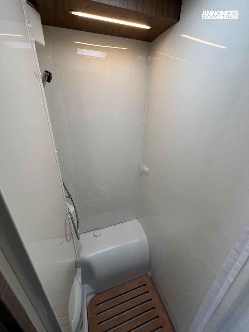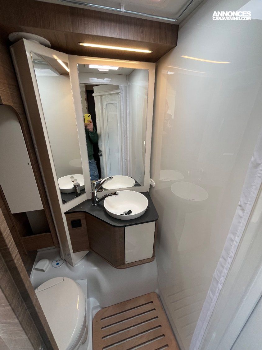 Corigon à réinventé l’intérieur de ce camping-car profilé avec un véritable salon face/face, un grand frigo à compression, une douche vario ingénieuse, une soute garage de très grande capacité et la présence d’un chauffage mixte Truma combi 6E!