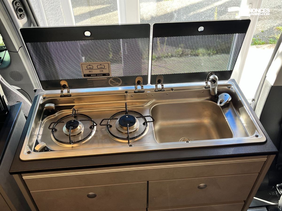 - Bloc cuisine avec réchaud et évier,