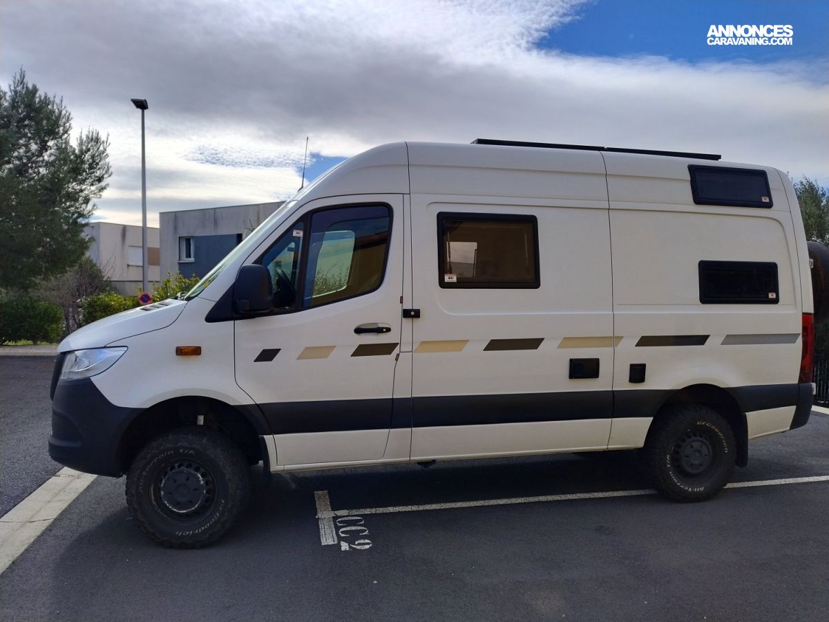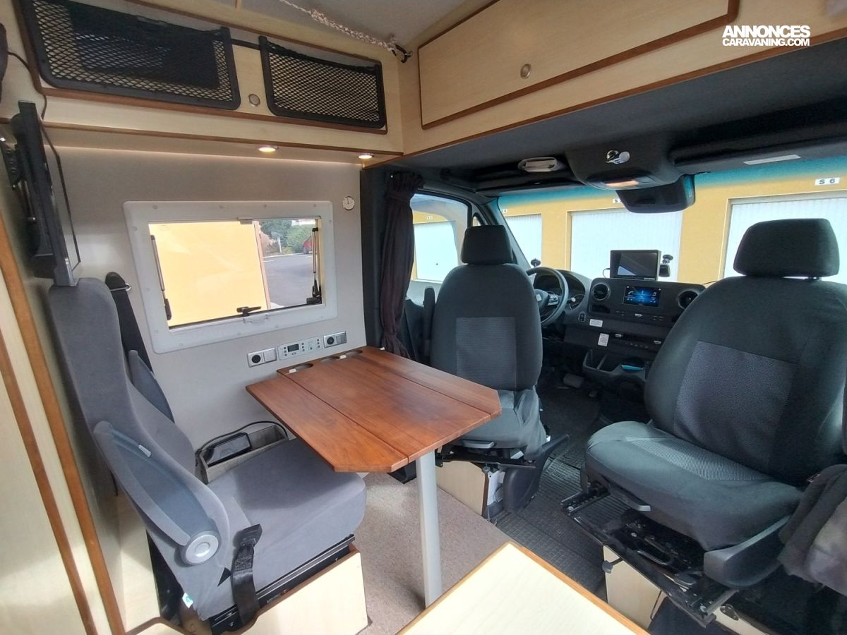 Côté conduite le confort et la performance sont aussi au rendez-vous grâce à la boite automatique 9 rapports Mercedes associé au puissant bloc moteur Mercedes également de 190 cv. L’ensemble reposant sur le châssis renforcé du modèle 419 tout en conservant un véhicule en VL de 3T5. Révision à jour et test d’étanchéité valide. Un véhicule prêt à partir à l’aventure avec ses nouveaux propriétaires.