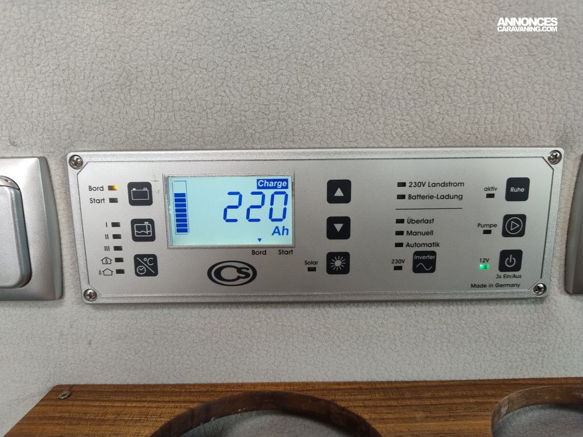 CHAUFFAGE CARBURANT, REFRIGERATEUR/CONGELATEUR, STORE EXTERIEUR 3.5M, PRISE GAZ EXTERIEURE, GAZINIERE 2 FEUX, ECLAIRAGE LED, MOQUETTE CELLULE, MOUSTIQUAIRE DE PORTE CELLULE, VOLET ISOTHERME INTERIEUR, REFRIGERATEUR 12V A COMPRESSION, LANTERNEAU PANORAMIQUE, MARCHEPIED INTÉGRÉ, KIT ALTITUDE POUR CHAUFFAGE CARBURANT, SOG, COMBINE CHAUFFAGE / CHAUFFE-EAU TRUMA D6 GASOIL AVEC KIT ALTITUDE, DOUCHETTE EXTERIEURE EAU CHAUDE ET FROIDE