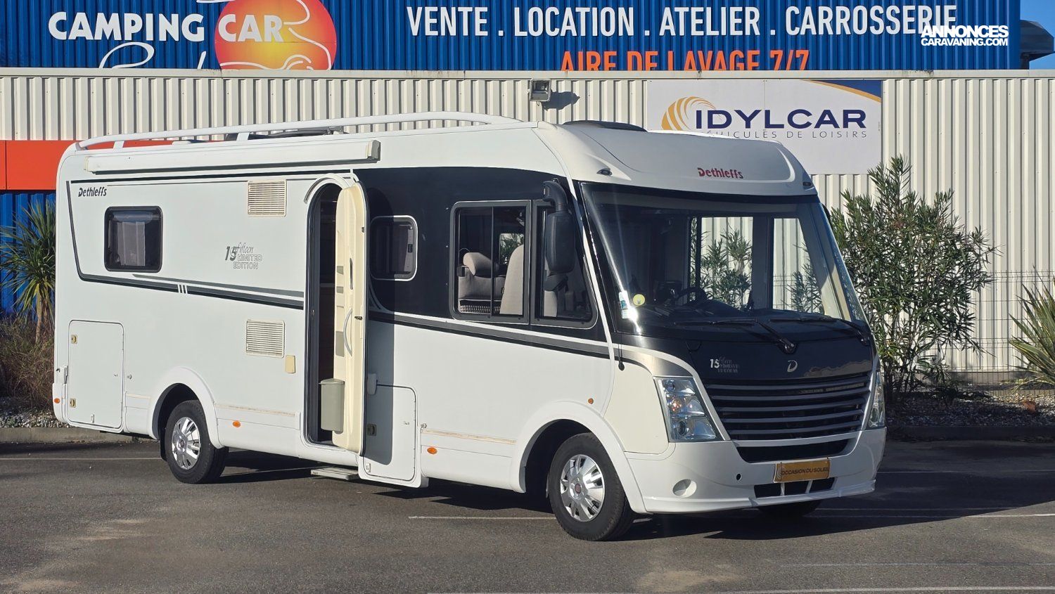 Info sur la société: parc de vente, location, magasin d'accessoires, atelier réparation, carrosserie + cabine spéciale camping-car, aire de lavage 24h/24h.