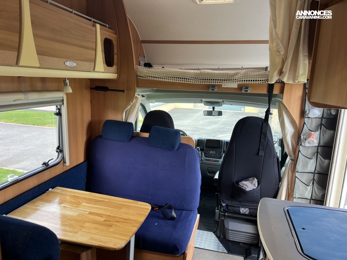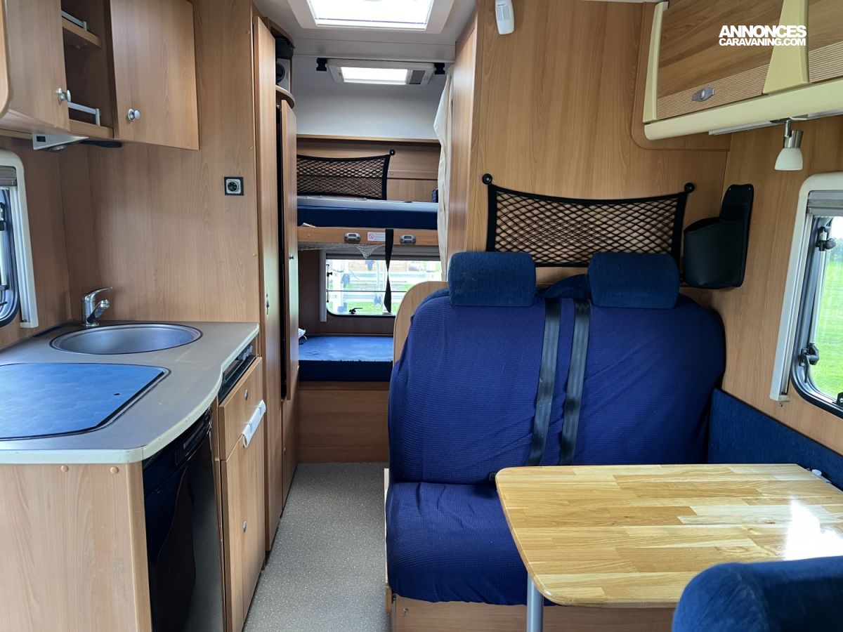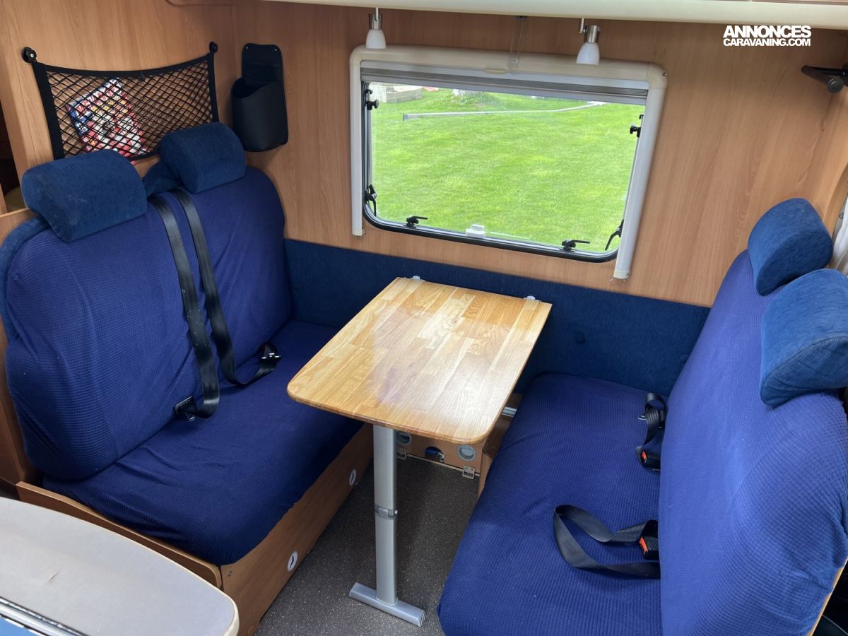Voici une capucine Dethleffs 2008, pensée pour 6 personnes, au format compact, en très bon état. Le compromis parfait entre espace familial et facilité de conduite.