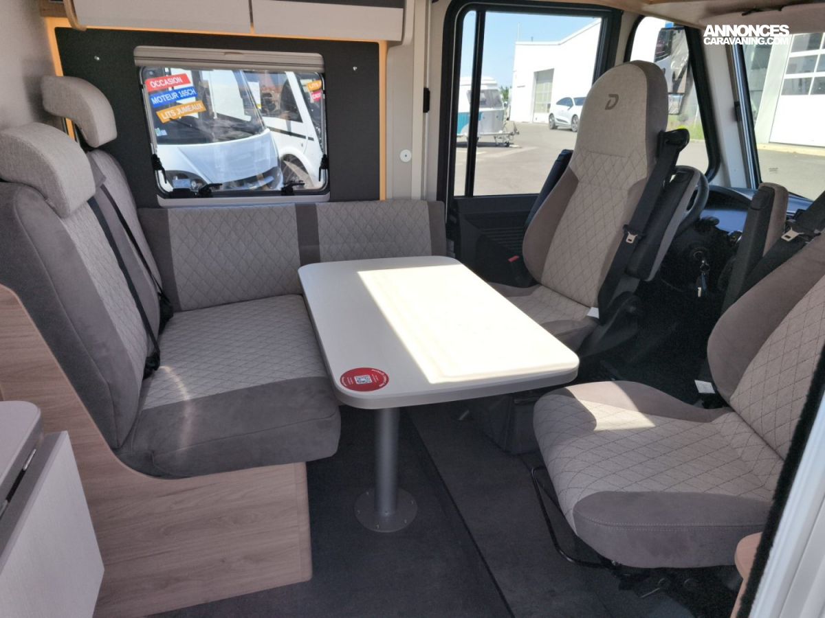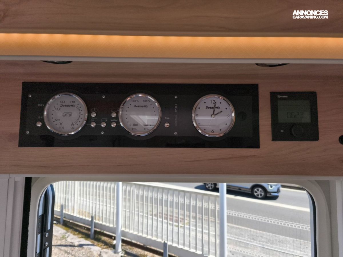 - Pack "Active" (climatisation de cabine automatique, compteur de vitesse numérique avec écran 7", chargeur de téléphone sans fil, frein de stationnement électrique, caméra de recul, système de navigation Dethleffs avec DAB+ et navigation, Apple CarPlay et Android Auto sans fil, réservoir d'eaux usées isolé, commande de chauffage digitale "Truma CP Plus", Tissu "Jupiter", design extérieur Active, store 4M50, pré-équipement climatisation de toit, pré-équipement caméra de recul, habillage baie de salon illuminé),