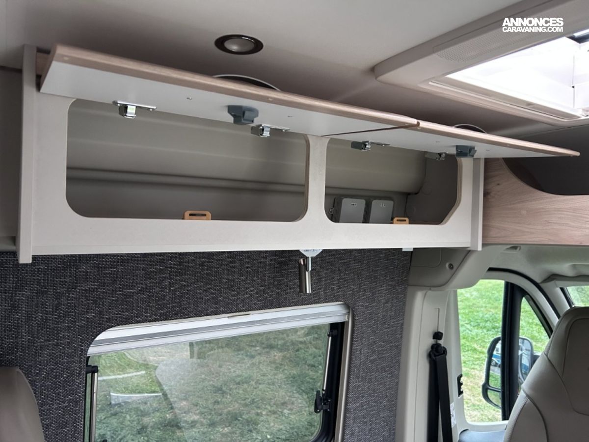 PACK 90 ANS : JANTES ALU 16, VOLANT ET POMMEAU CUIR, BAIES A CADRE, BAIE PROJETABLE ARD, PRE EQUIPEMENT PANNEAU SOLAIRE ET TV, SUPPORT TV, PRE CABLAGE CAMERA DE RECUL, PLACARDS DE PAVILLON AVEC ECLAIRAGE INDIRECT, DOUBLE PRISE USB DANS LA PARTIE ARG, STORE EXTERIEUR