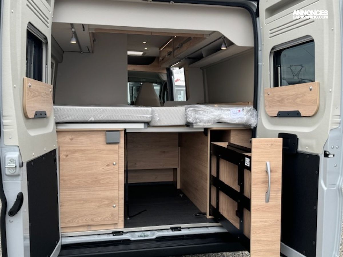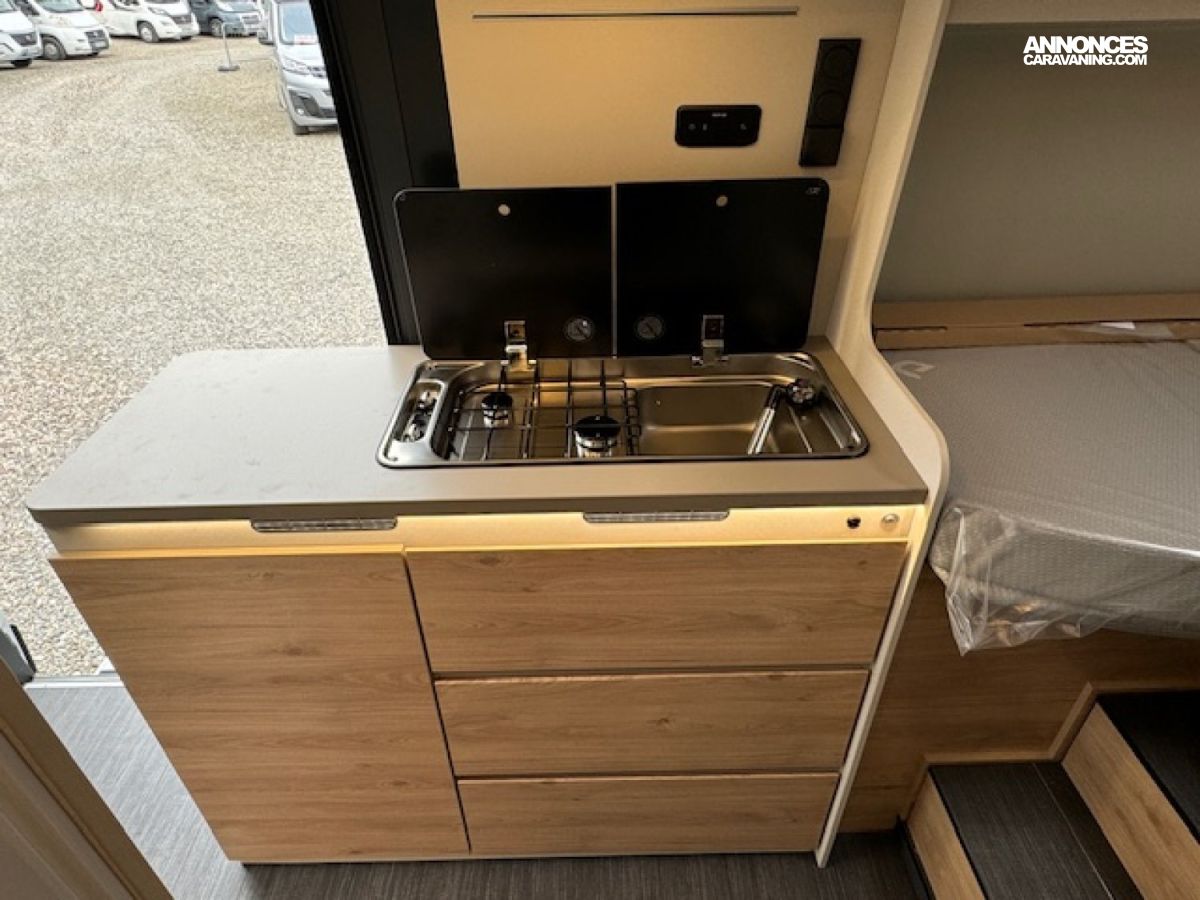 - Pack électrique : Double prise USB dans la partie arrière gauche, prise 12V, Prise 230V dans le meuble haut avant gauche (dînette), Eclairage indirect, Bandes lumineuses à LED, Pré-équipement pour panneaux solaires
