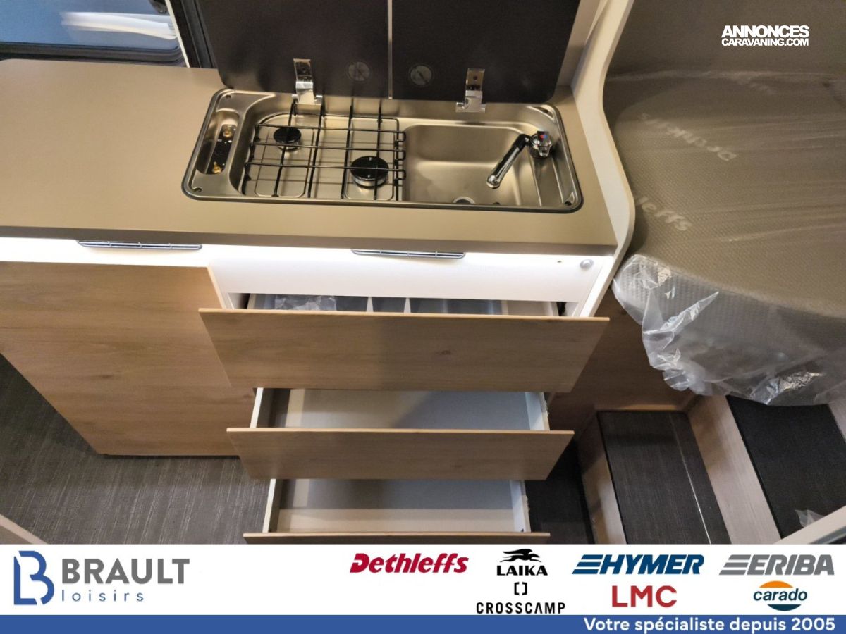 Réservoir carburant 90 litres, Store Extérieur Noir, Jantes alu 16, Pare-chocs peints dans la couleur de la carrosserie, Volant et pommeau cuir, Feux de jour à leds, Éclairage d'auvent, Baies à cadre avec double vitrage, Rallonge de table rotative, Double prise USB