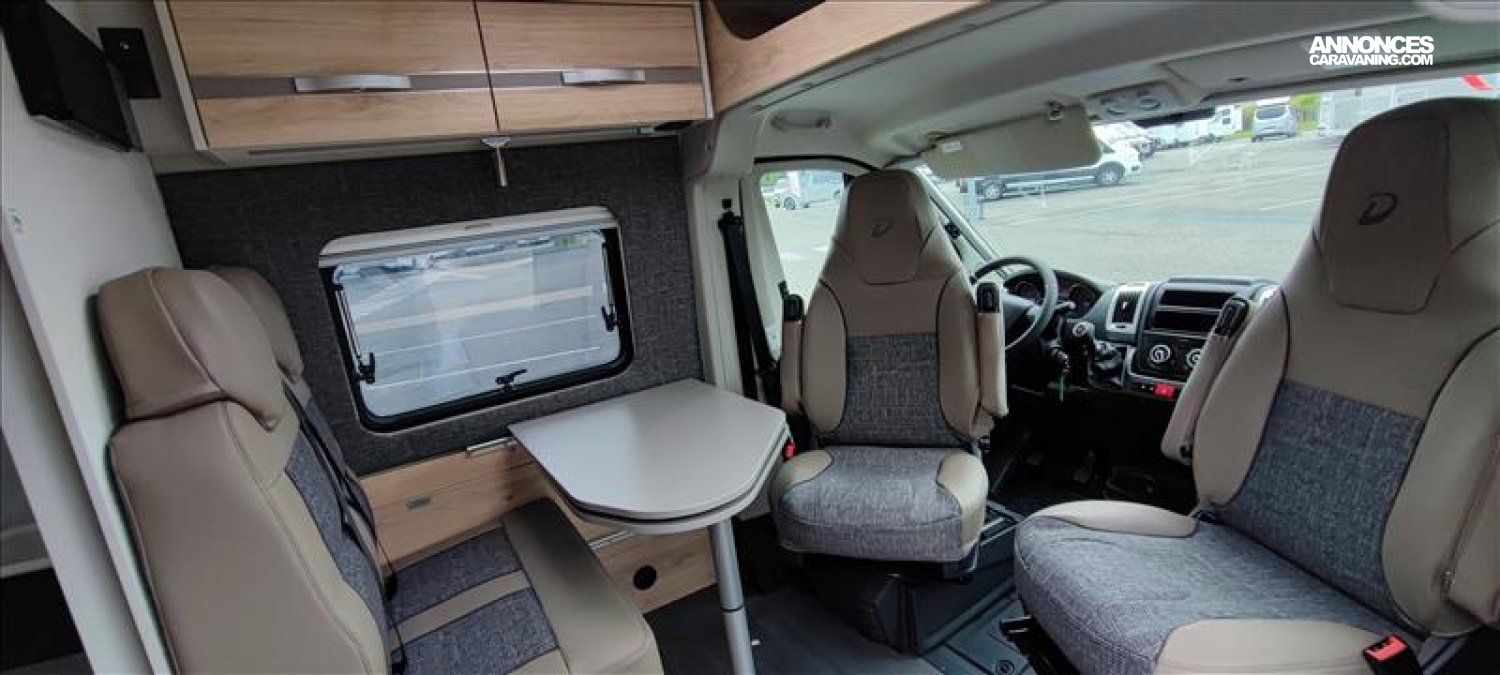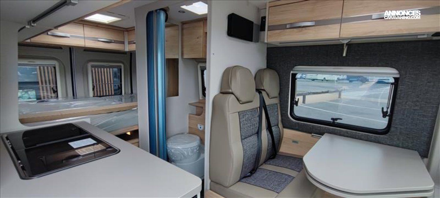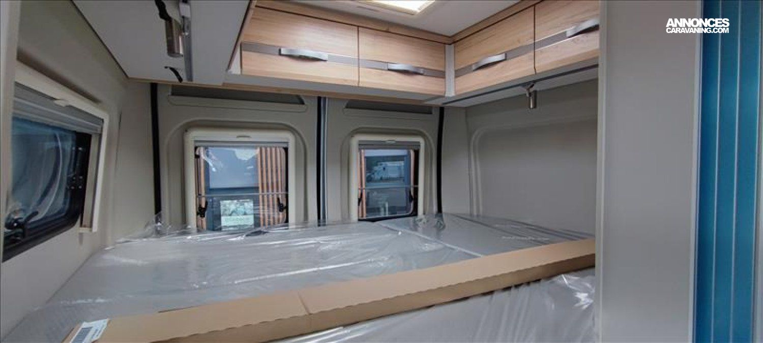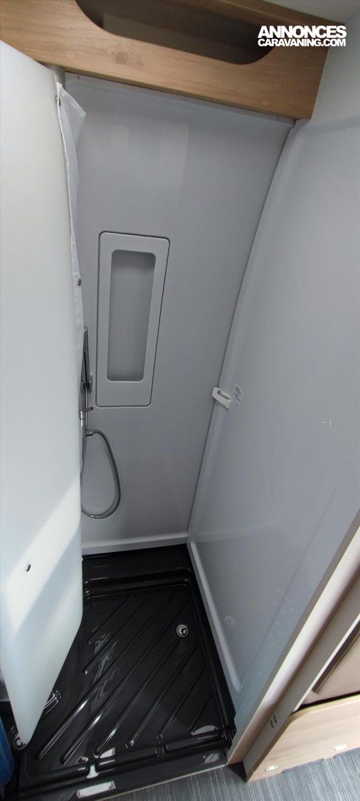 Moutiquaire de porte cellule, Reservoir carburant 90L, Rails 12v ( éclairage + prise), Chauffage / chauffe eau GAZ, Triples ouvertures dans la chambre, Tiroir de rangement dans la soute, Marche pied electrique, Jante alu 16", Store exterieur, Abs, ASR, Climatisation porteur, ESP, Feux LEDS, Regulateur de vitesse, Douche Vario, Matelas confort