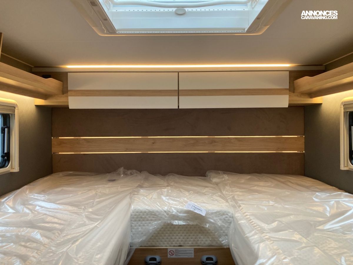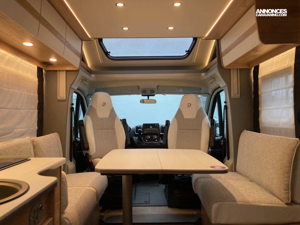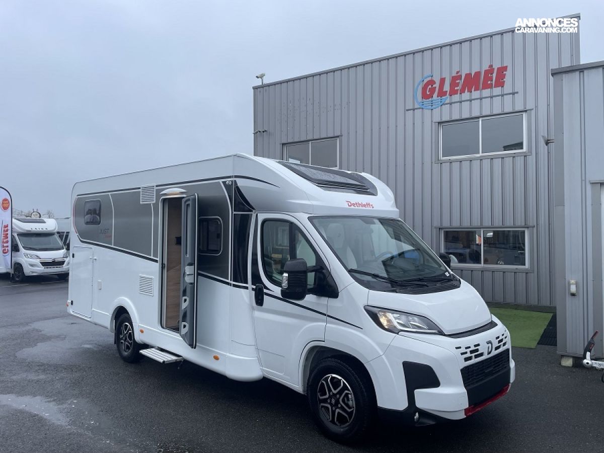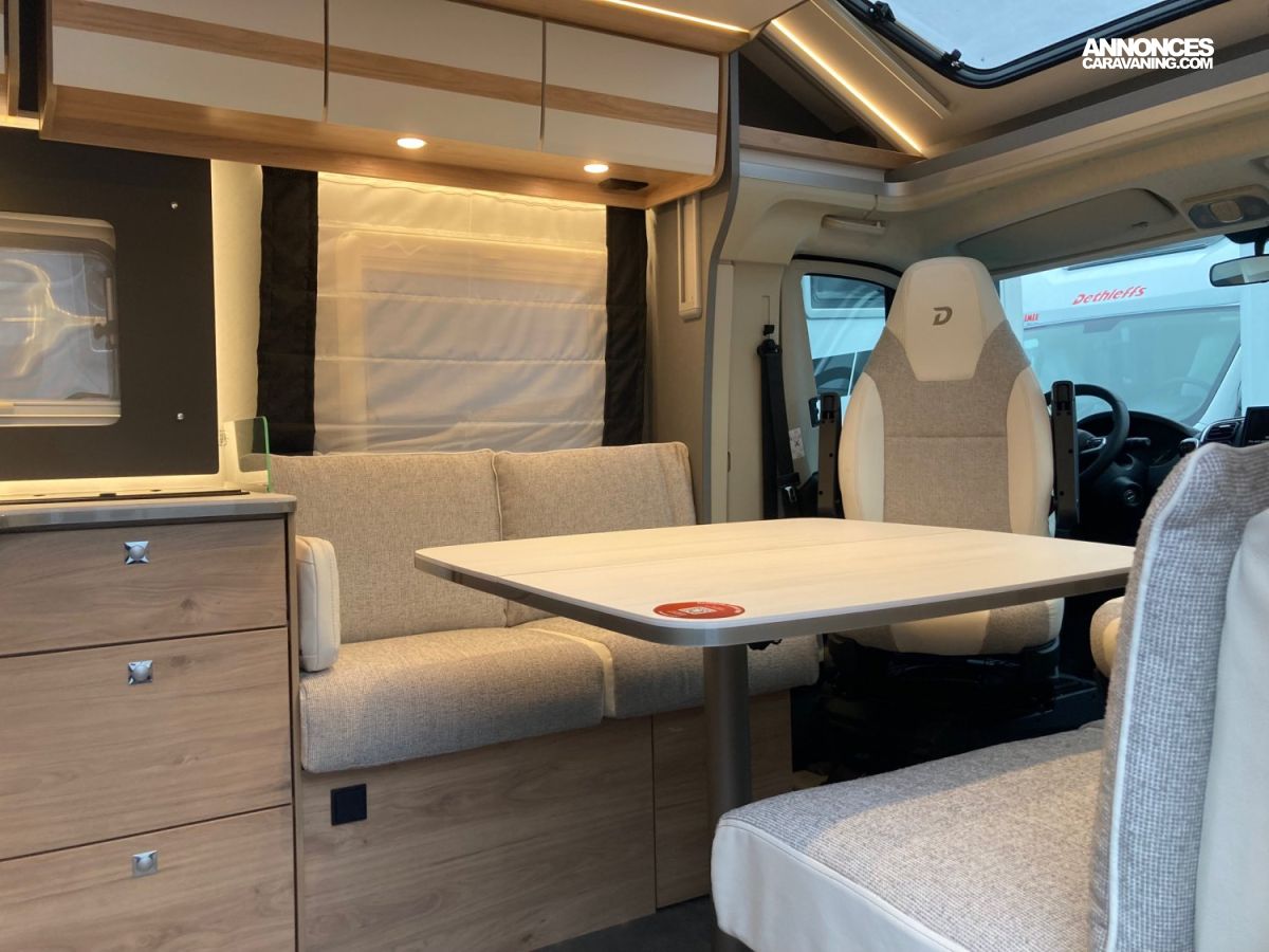 Pack active : Caméra de recul, Commande digitale CP PLUS, Système de navigation Dethleffs, apple carplay, Android auto sans fil, Eclairage indirect, Tissu HERON, Design extérieur Active, (support de feux arrière avec diffuseur noir, stickage spécifique, lame de pare-choc avant rouge) Lit de pavillon électrique