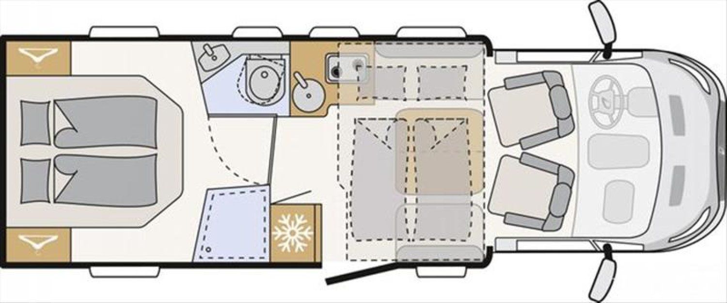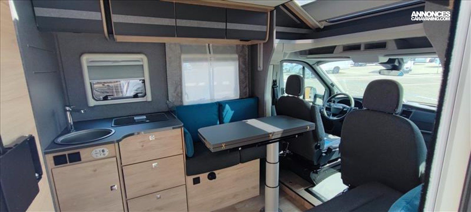 REFRIGERATEUR 137 LITRES, ANTENNE SAT AUTO, CARROSSERIE EN POLYESTER, CUISINE AVEC RECHAUD 2 FEUX