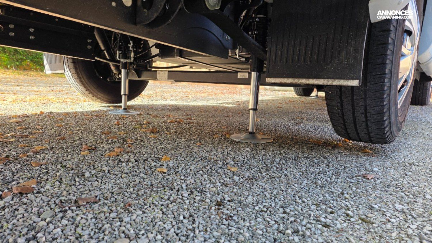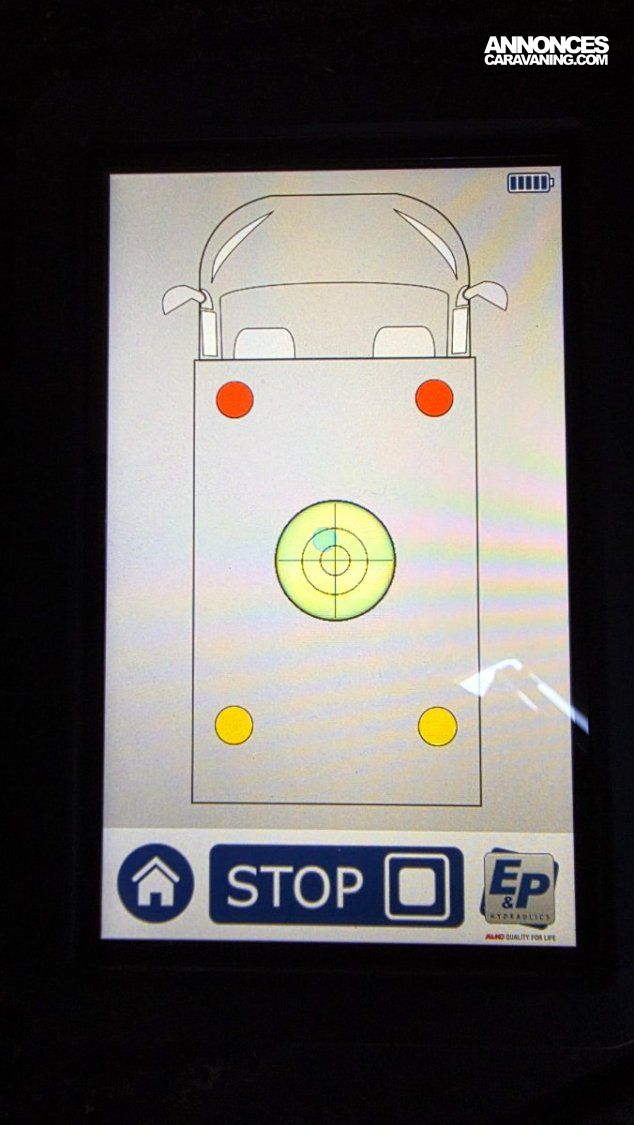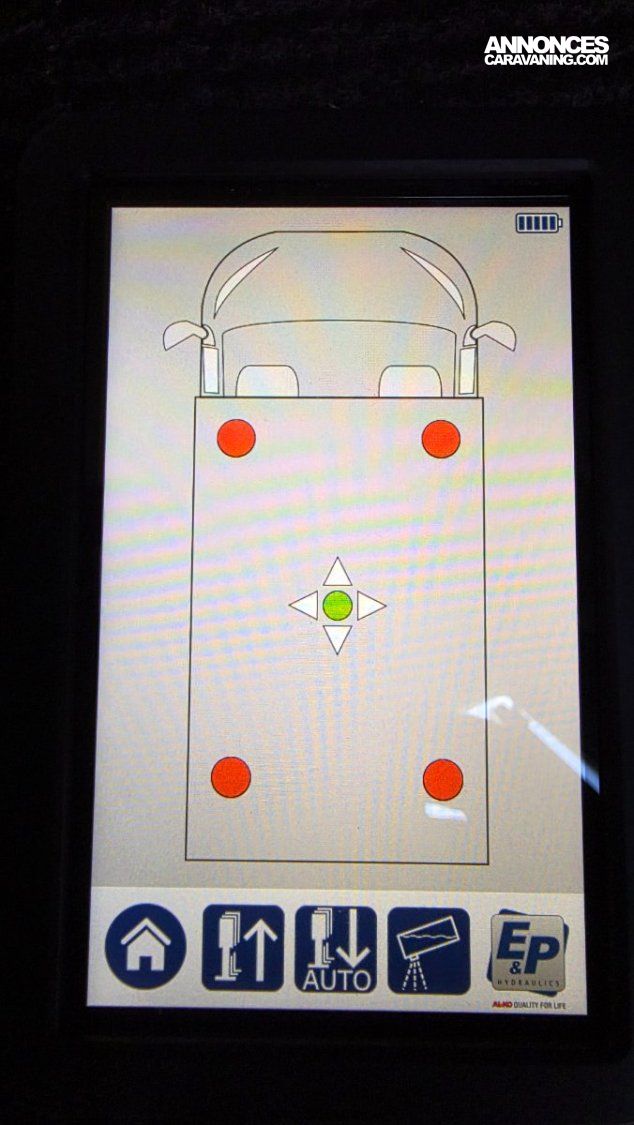 Plus besoin de calles pour la mise à niveau, camping-car équipé de 4 VERINS HYDRAULIQUES EP avec tableau de commande tactile portable, moins de 2 minutes pour la mise a niveau de votre camping-car