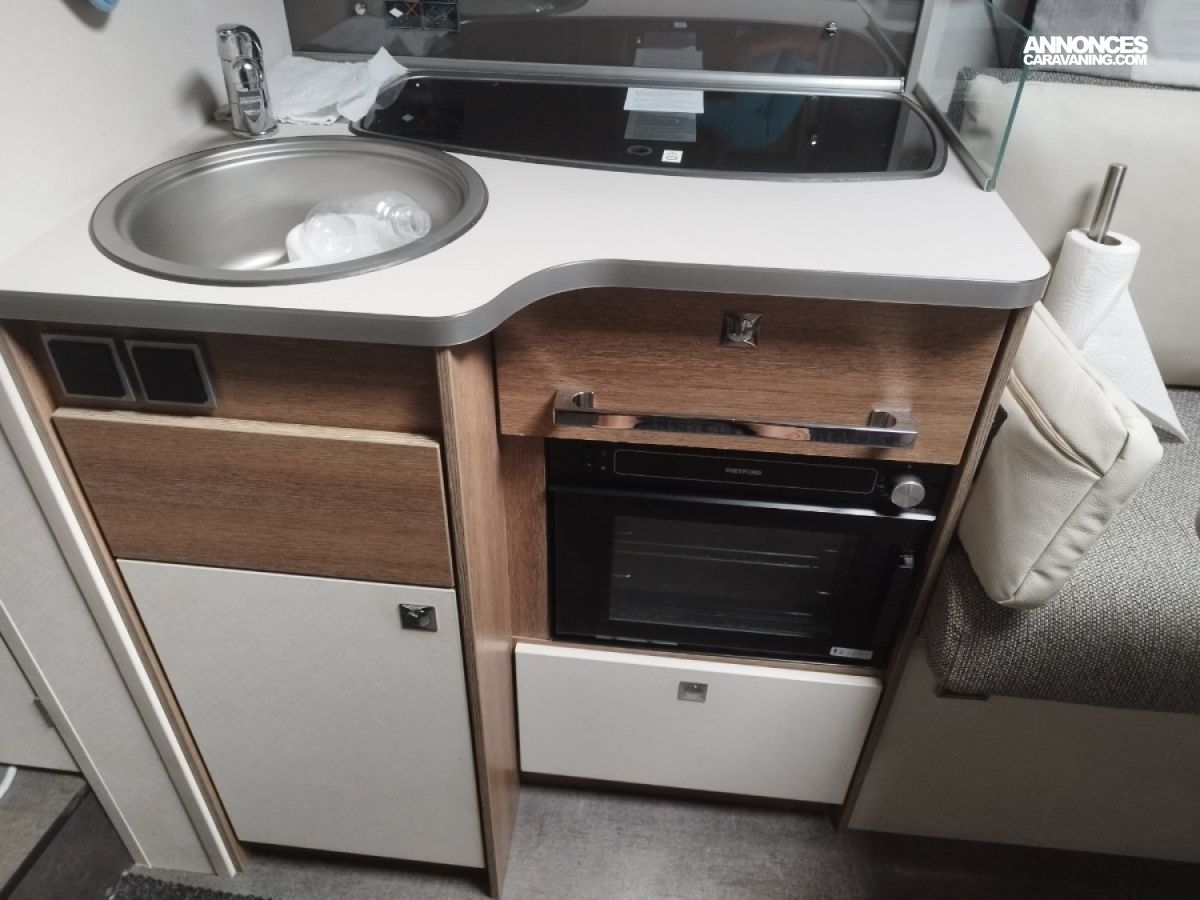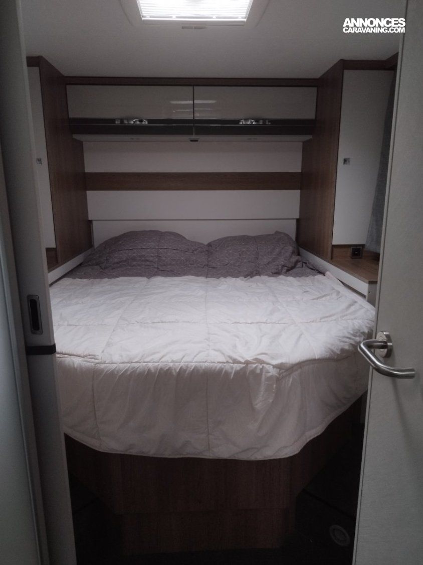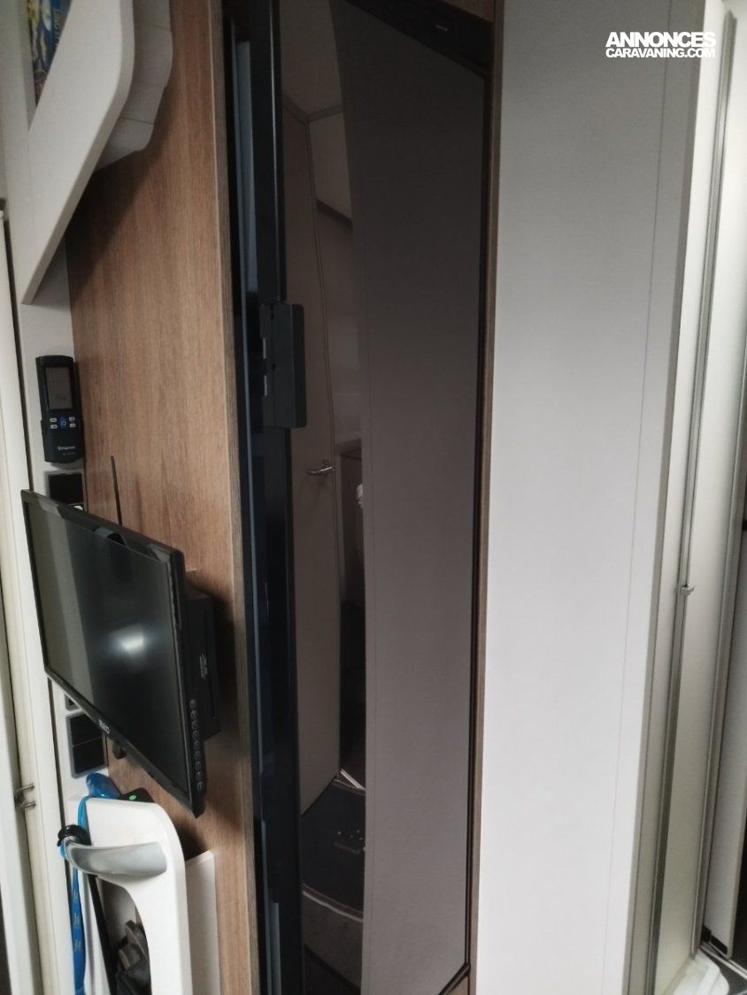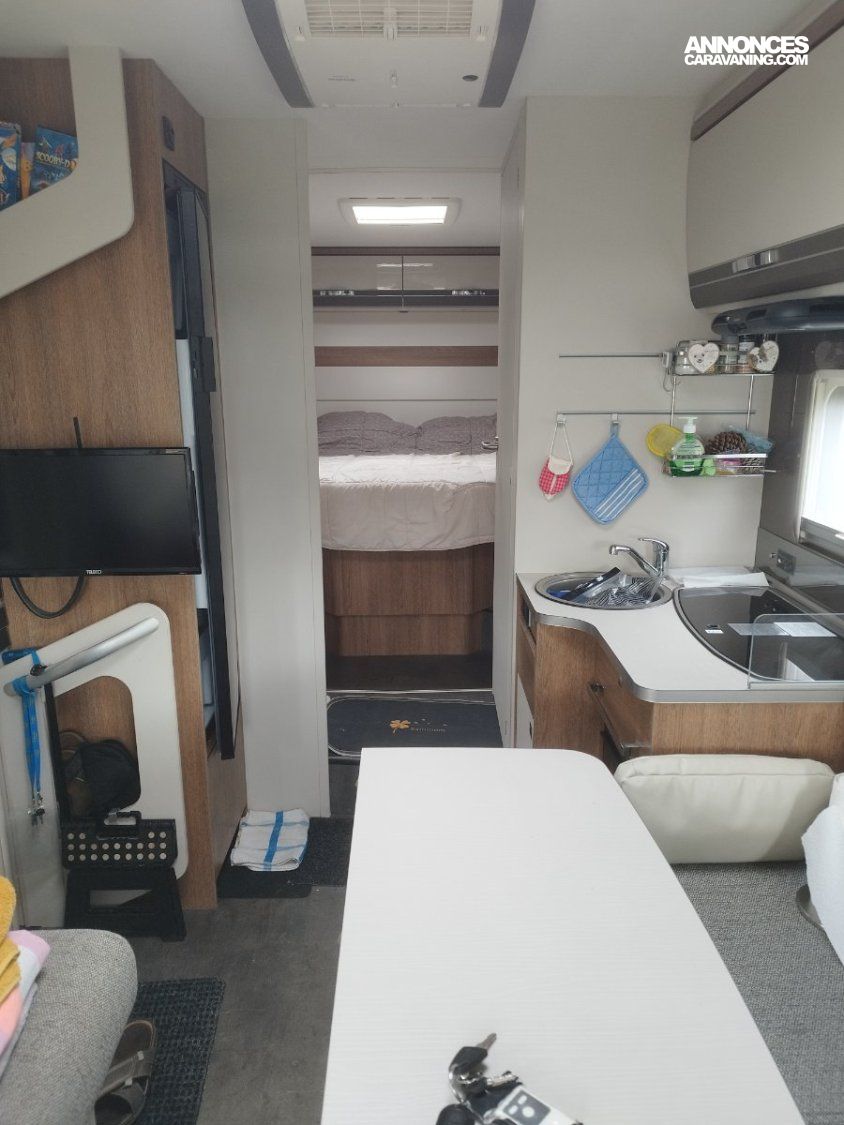 La cellule est équipée d'un salon face à face, une table repliable pour bien libérer le passage, coffre sous les sièges, Convertisseur 12v/220v 1000W, nombreux rangements, TV avec antenne satellite automatique et antenne TNT, éclairage leds dans toute la cellule, une climatisation réversible TRUMA est installée sur le toit.