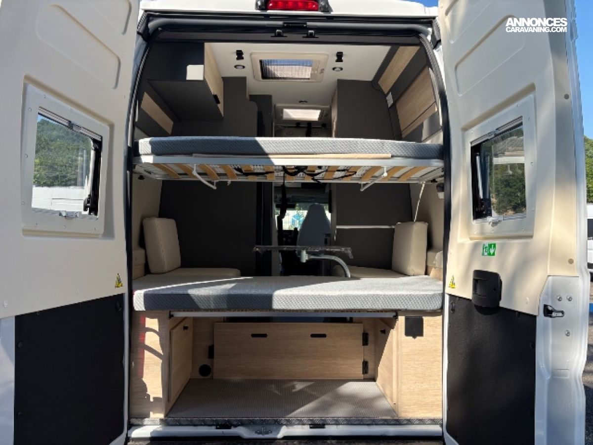 2eme batterie, Camera de recul, Chauffage gasoil, Climatisation manuelle cabine, Douchette ext, Eclairage sous plan de travail, Gouttiere laterale led, Isolation cellule XHP, Marche pied lateral, Moustiquaire porte latérale, Radio dab, Réfrigérateur 149L, Régulateur/limiteur de vitesse, Véhicule neuf d exposition