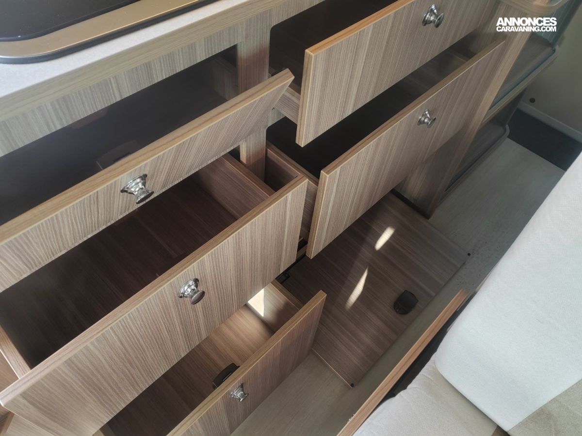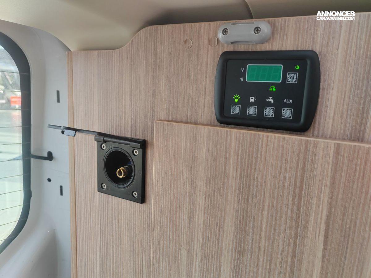 EVIER, ROUE DE SECOURS, AUTORADIO BT, NOMBREUX RANGEMENTS, STORE EXTERIEUR, CHAUFFAGE STATIONNAIRE, CAPTEURS DE STATIONNEMENT AV ET AR, REGULATEUR-LIMITEUR DE VITESSE, CLIM PORTEUR, VITRES TEINTEES, FEUX DE CROISEMENT LED, COMMANDES AU VOLANT, RETROVISEURS ELECTRIQUES, PLAQUE CUISSON, ANTIBROUILLARDS, FRIGO 51L