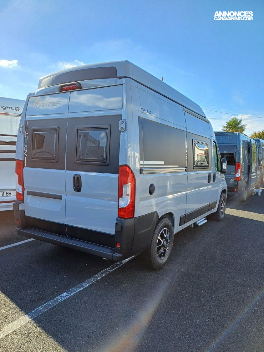 - Finition ADDICT: Finition FUN+, 2 batteries cellule AGM 92 Ah (avec coupleur, séparateur et booster), station multimédia DAB PIONEER® avec écran 6,8” ,APPLECARPLAY ANDROID AUTO, caméra de recul ,volant et pommeau cuir, commandes au volant pour radio, douchette extérieure eau froide, jantes noires en alliage léger 16", contrôle de pression des pneus, Skyview, ISOFIX, déco extérieure ADDICT, couchage d'appoint, antibrouillard avant .